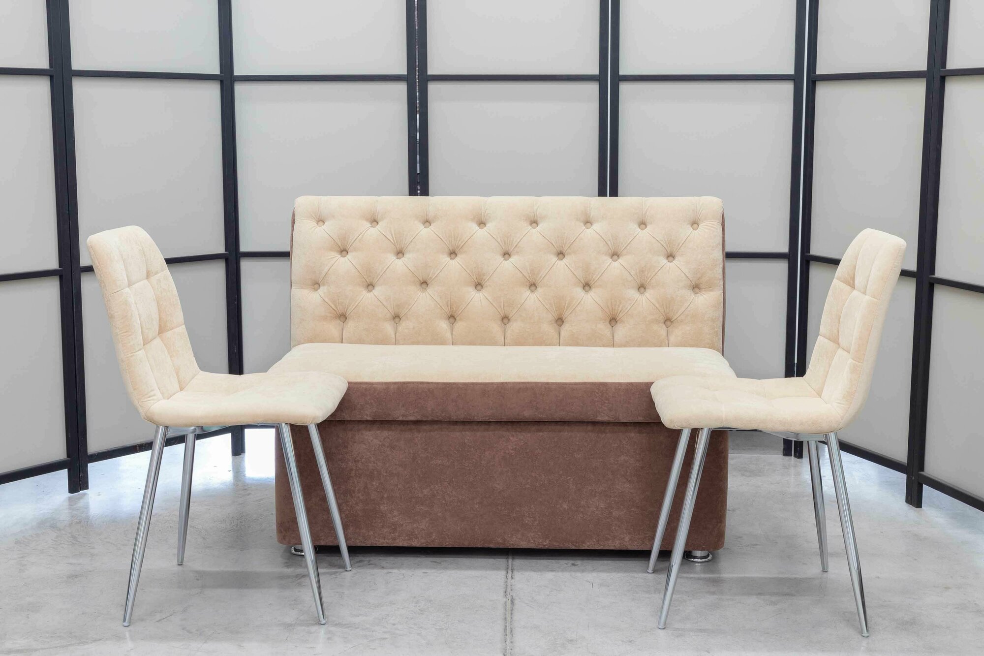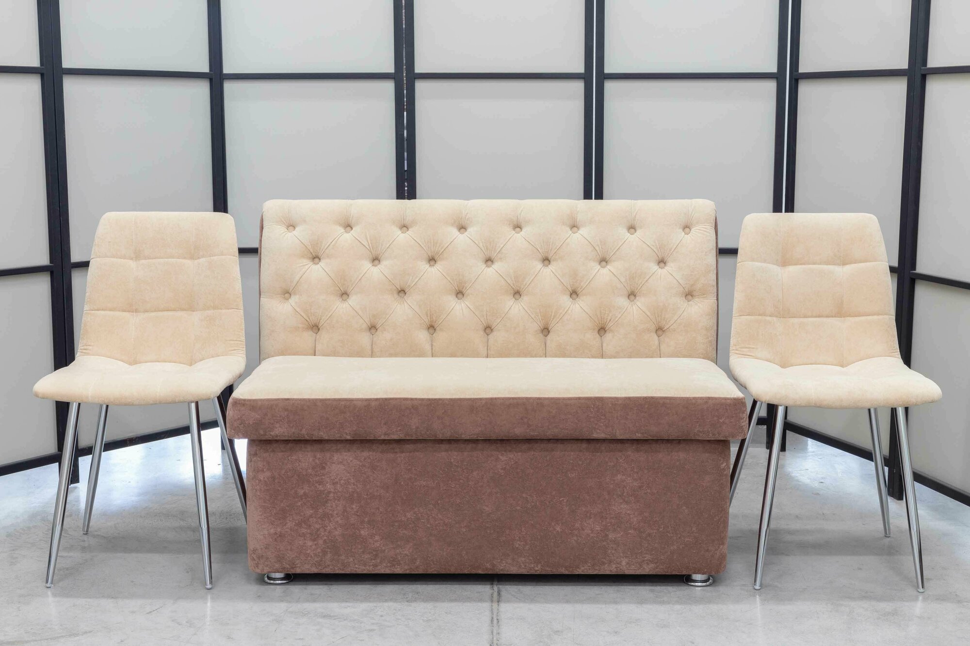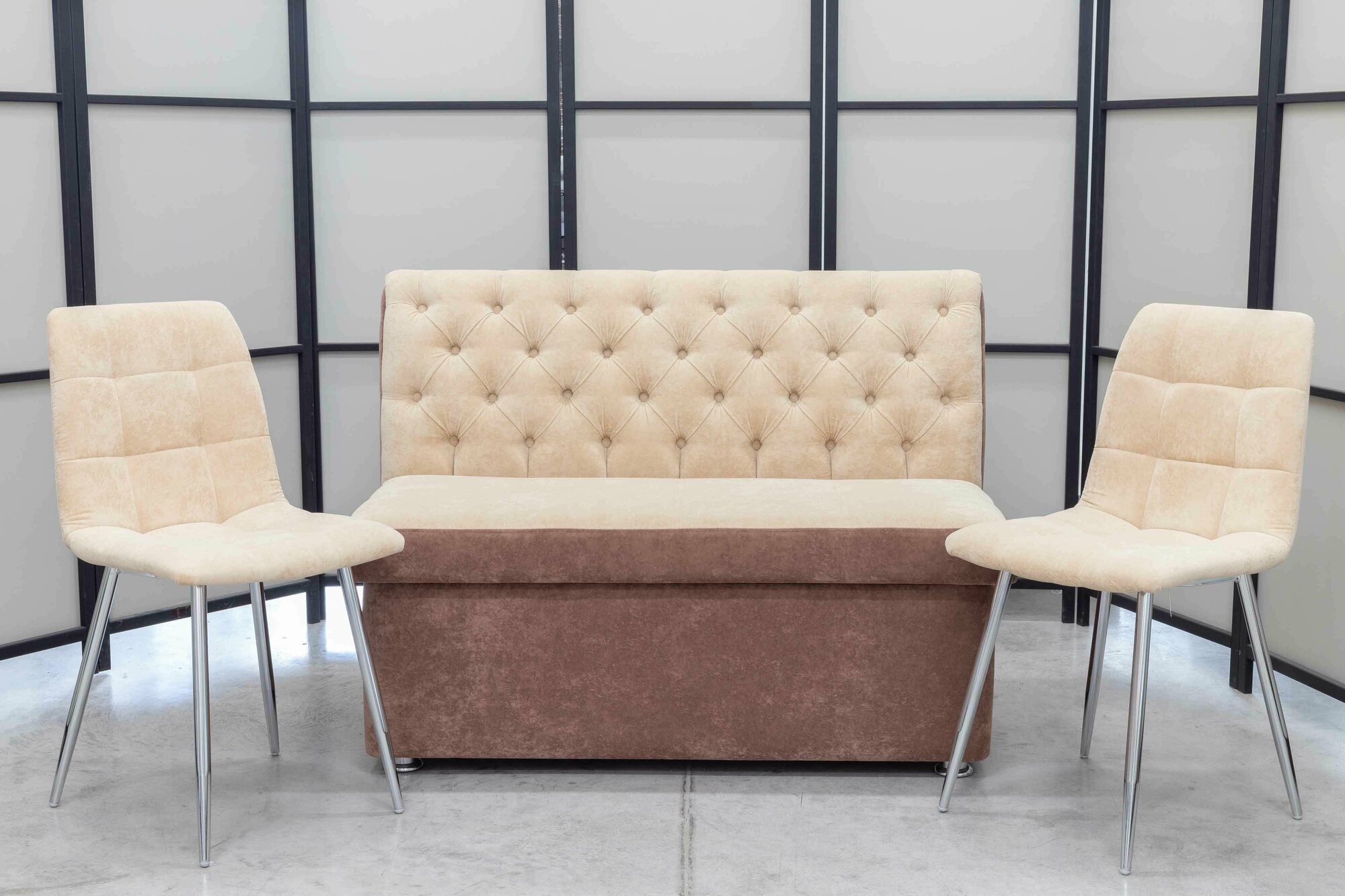 Купить Кухонный диван Монро со стульями (2 шт.), 120х65 см, обивка моющаяся, антивандальная, антикоготь, цвет - крем.