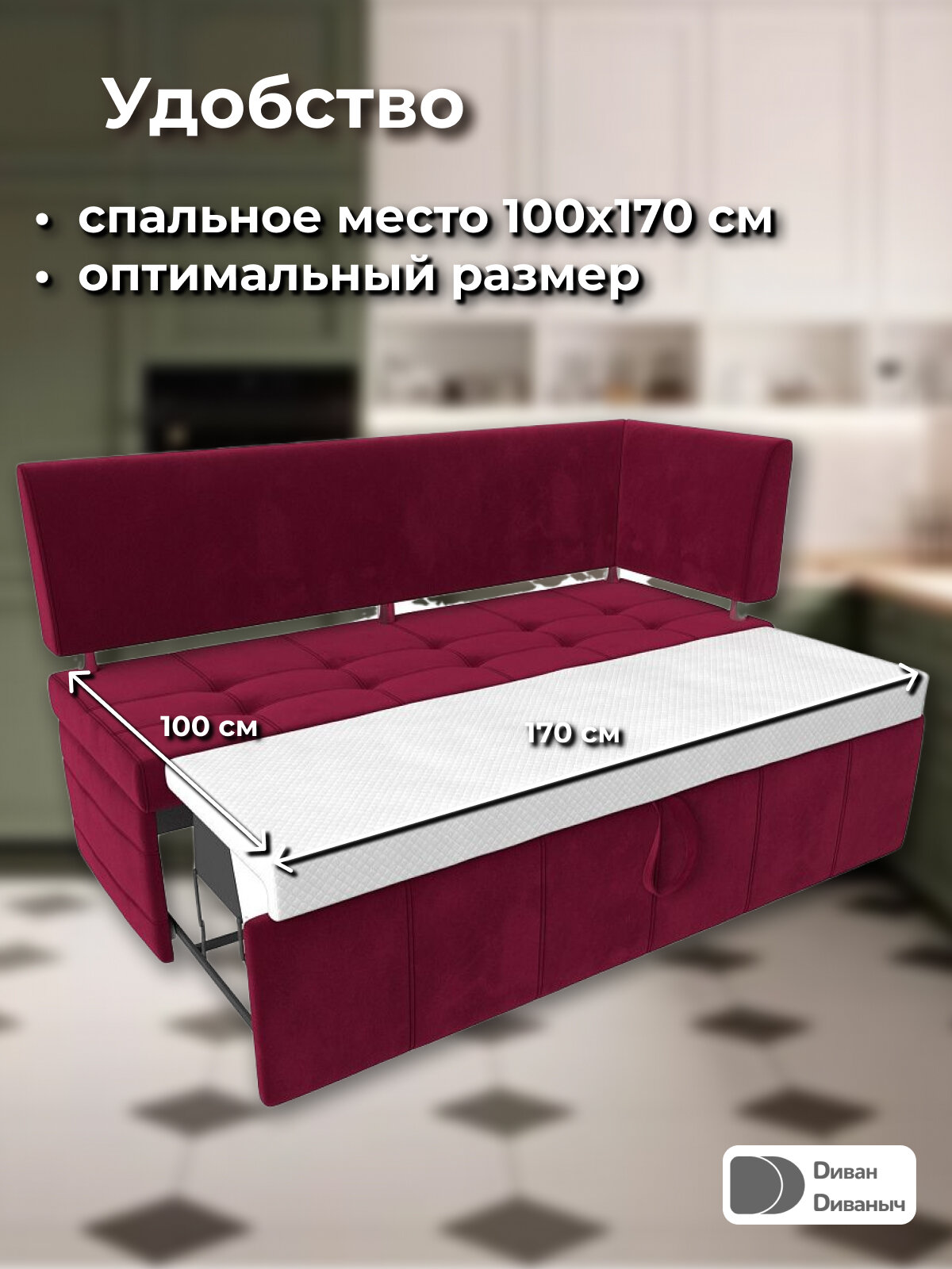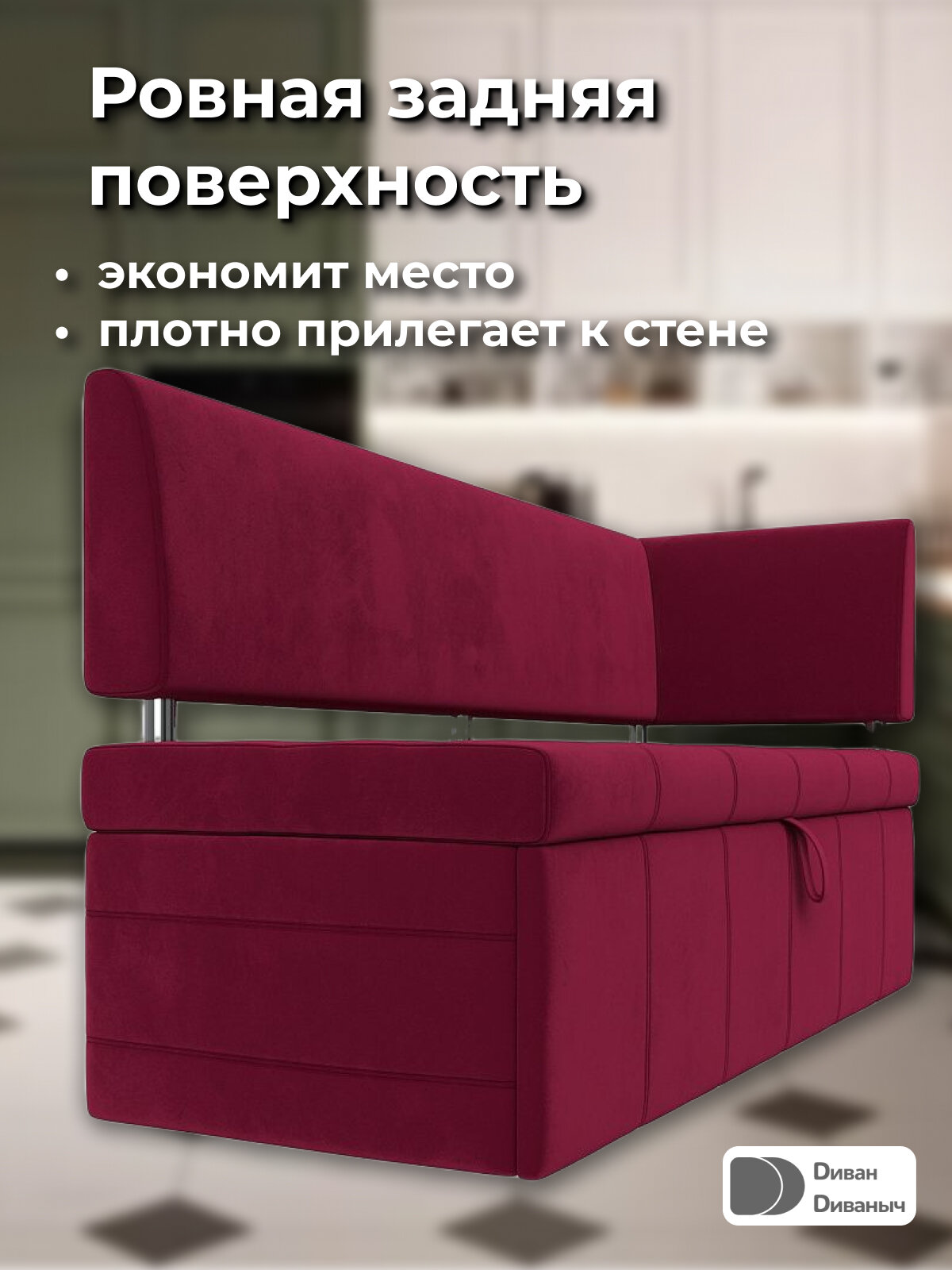 СохранитьДиван кухонный прямой Лотос со спальным местом 100х170 см, угол справа, Микровельвет красный интересное: