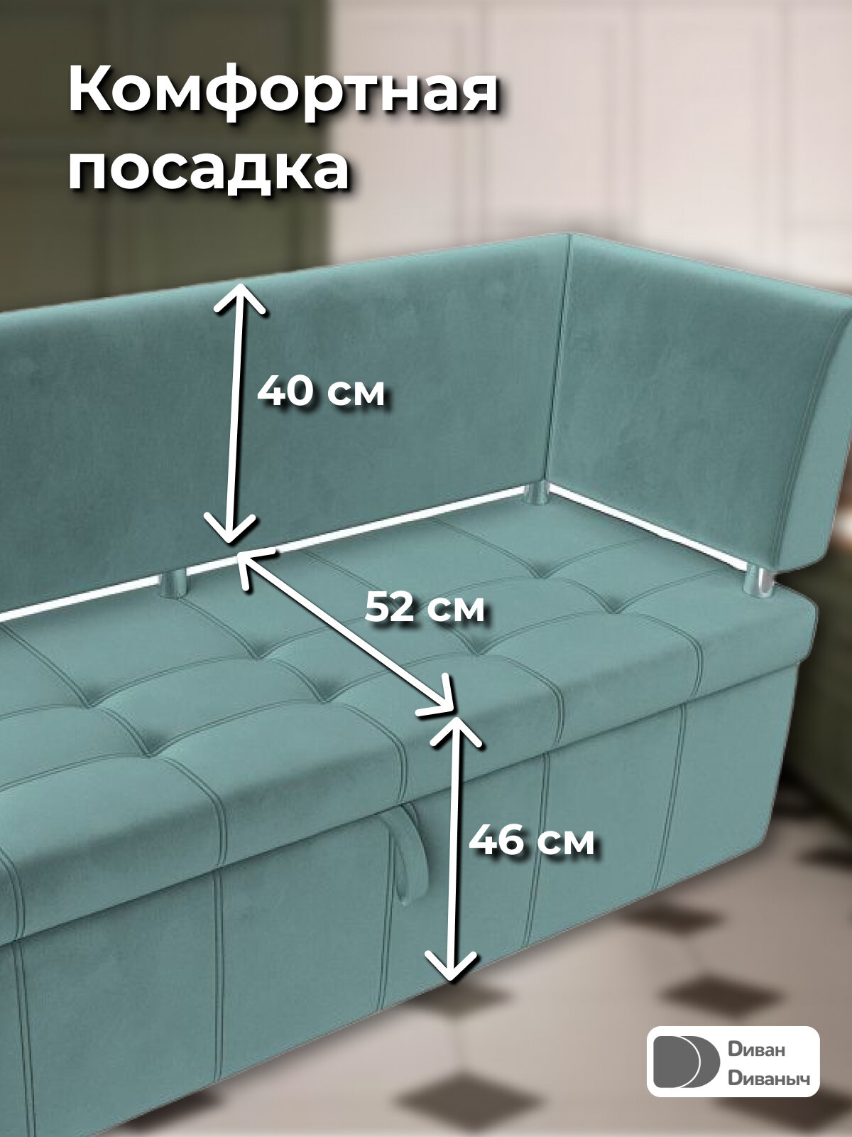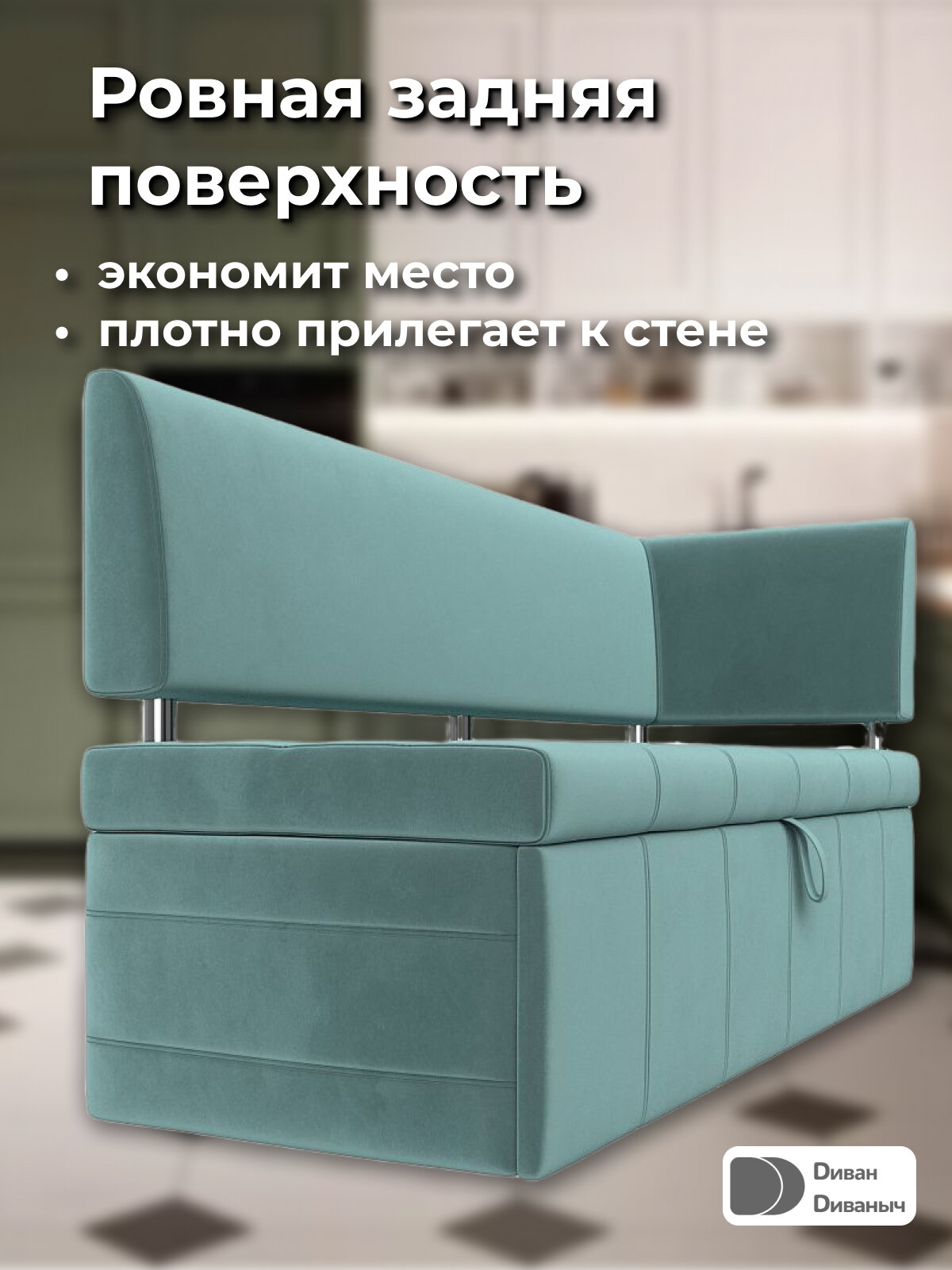 СохранитьДиван кухонный прямой Лотос со спальным местом 100х170 см, угол справа, Велюр бирюзовый интересное:
