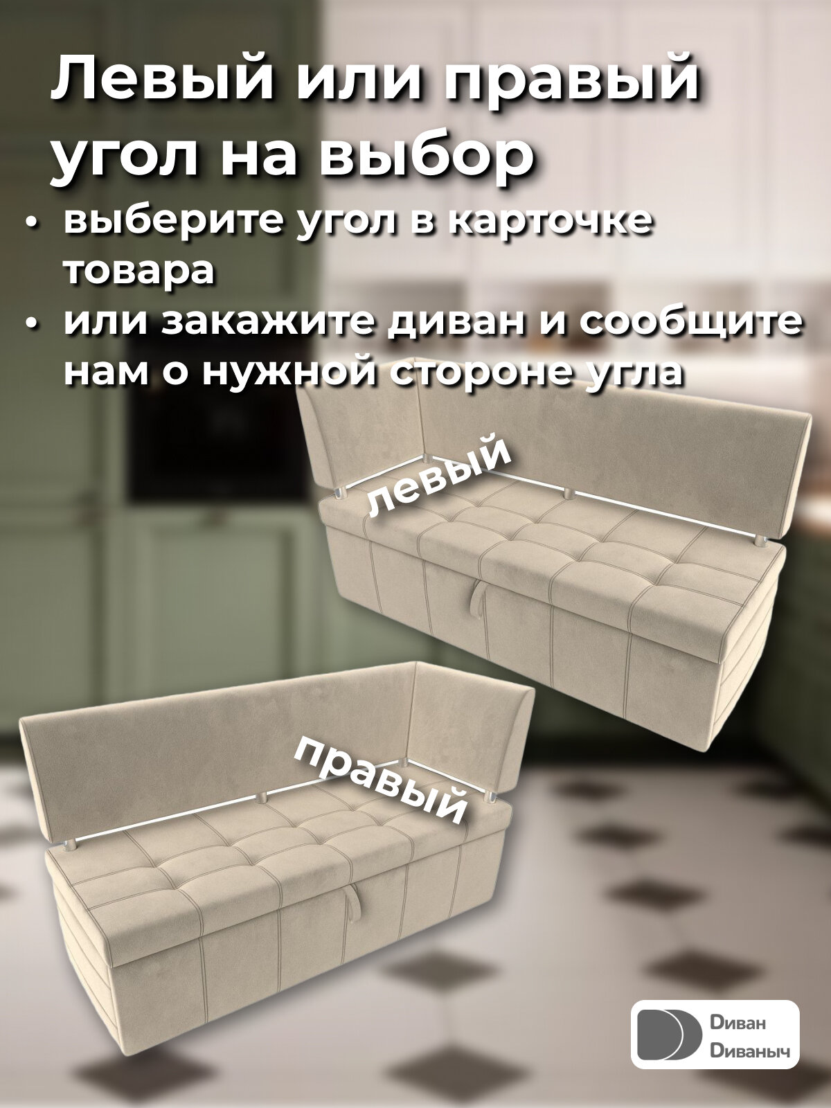 Диван кухонный прямой Лотос со спальным местом 100х170 см, угол слева, Микровельвет бежевый