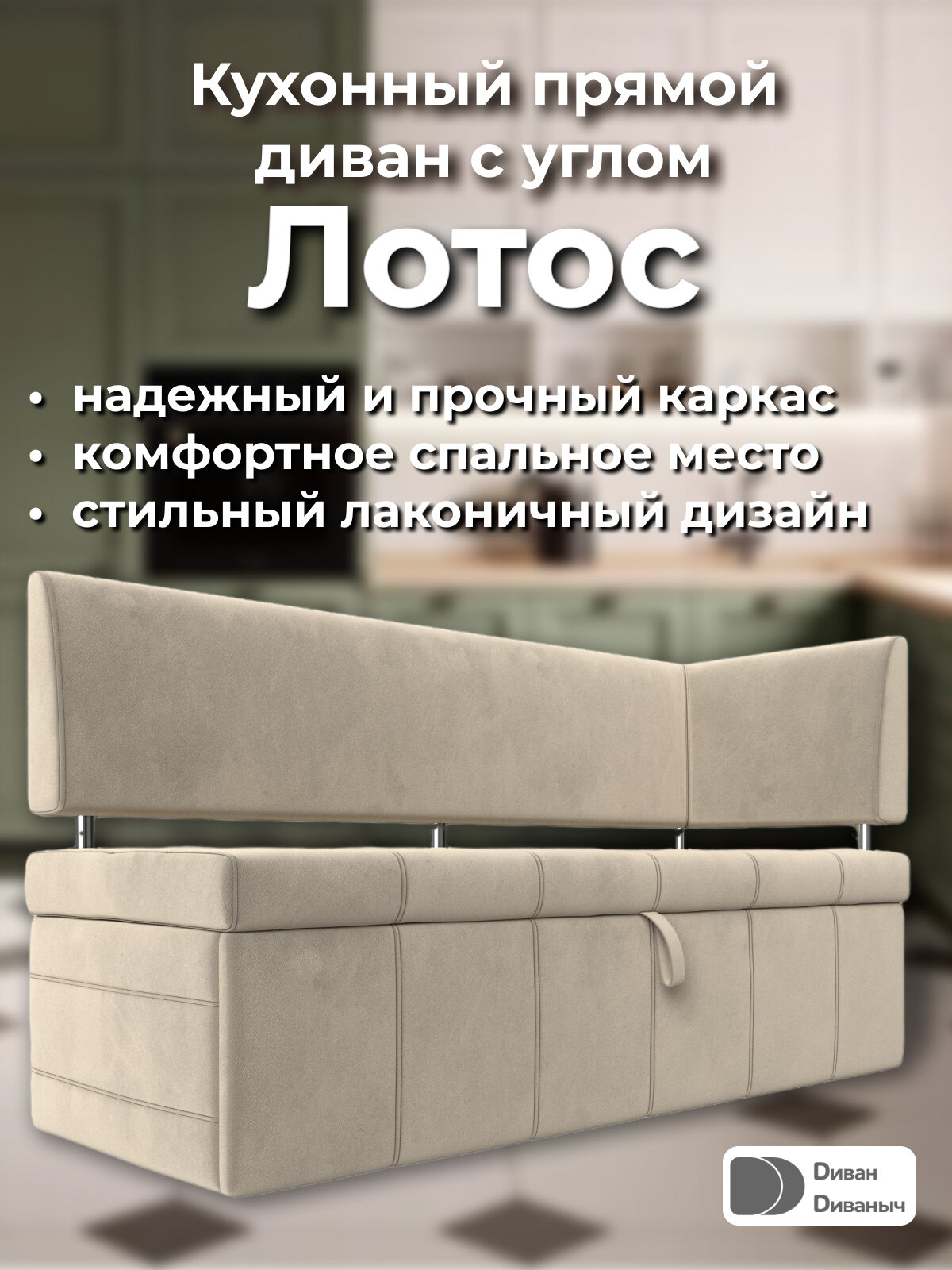 Ниже Вы можете прочитать отзывы на Диван кухонный прямой Лотос со спальным местом 100х170 см, угол справа, Микровельвет бежевый, ознакомится с подробными характеристиками, посмотреть интересные обзоры и фотографии на Диван кухонный прямой Лотос со спальным местом 100х170 см, угол справа, Микровельвет бежевый.