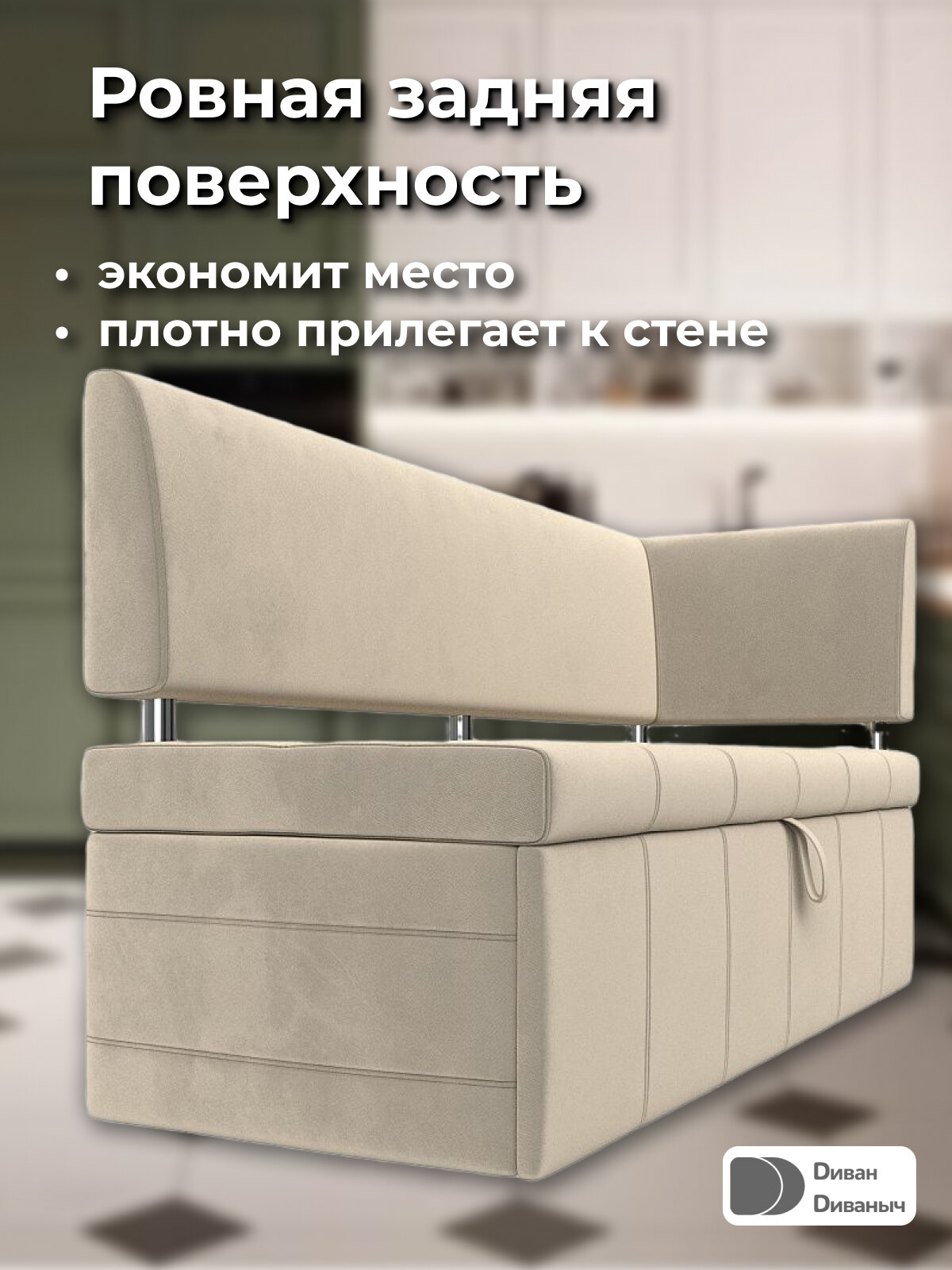 Диван кухонный прямой Лотос со спальным местом 100х170 см, угол справа, Велюр бежевый