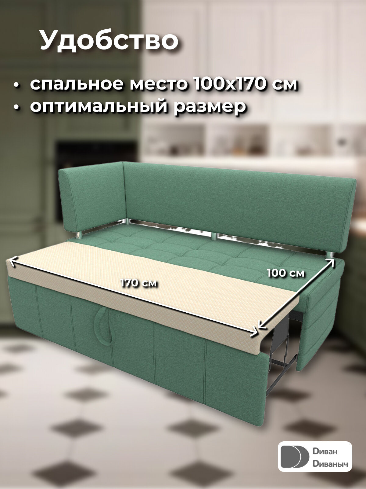 Диван кухонный прямой Лотос со спальным местом 100х170 см, угол справа, Микровельвет зеленый