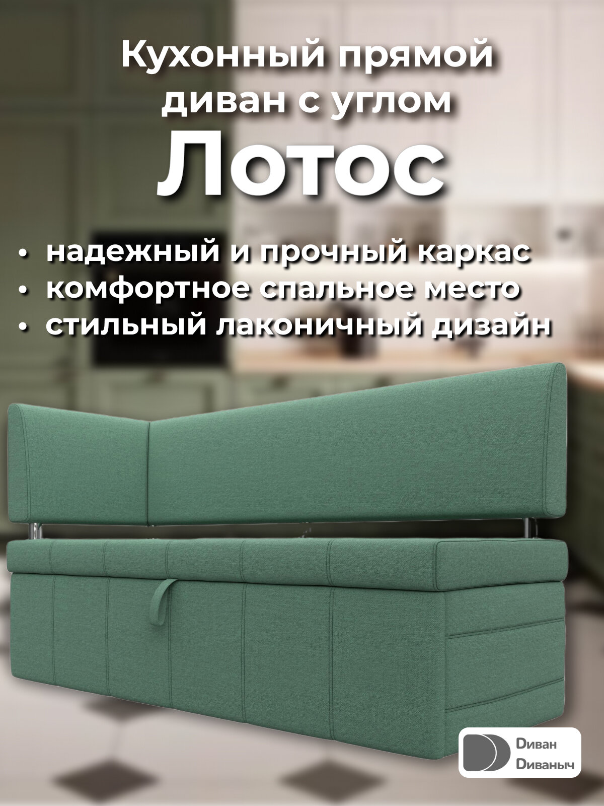 СохранитьДиван кухонный прямой Лотос со спальным местом 100х170 см, угол слева, Рогожка зеленый интересное: