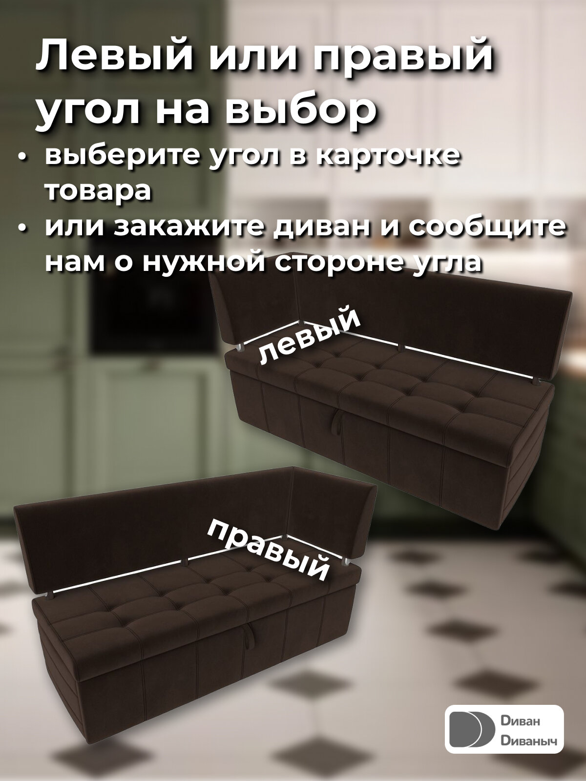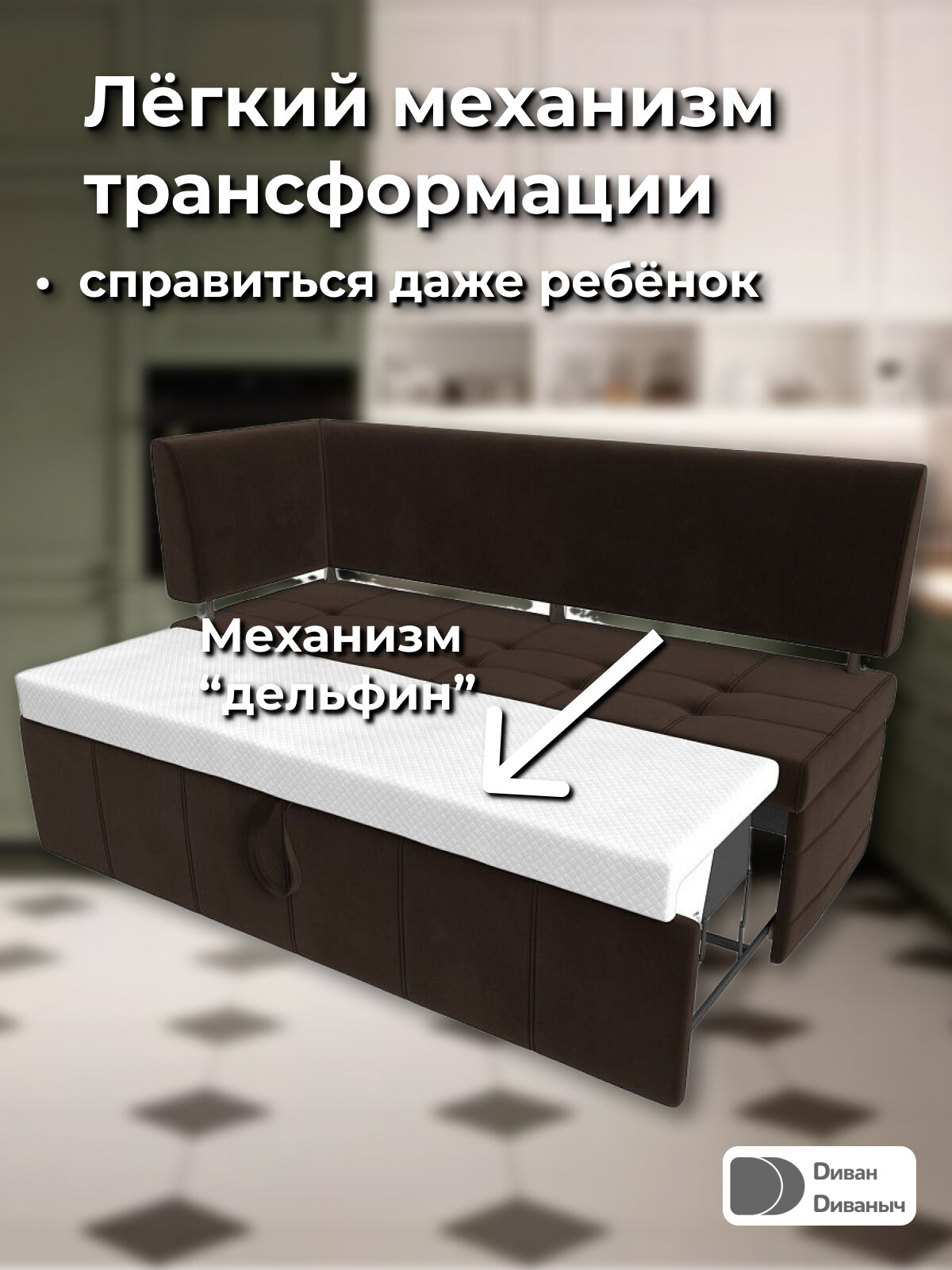 Диван кухонный прямой Лотос со спальным местом 100х170 см, угол справа, Микровельвет коричневый