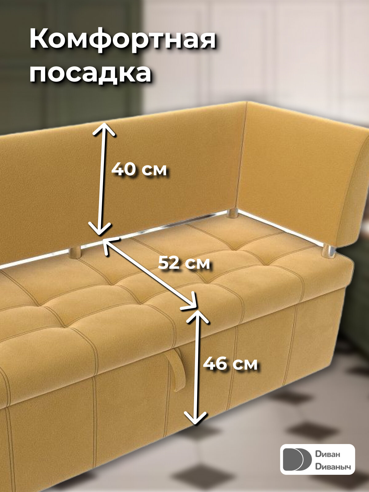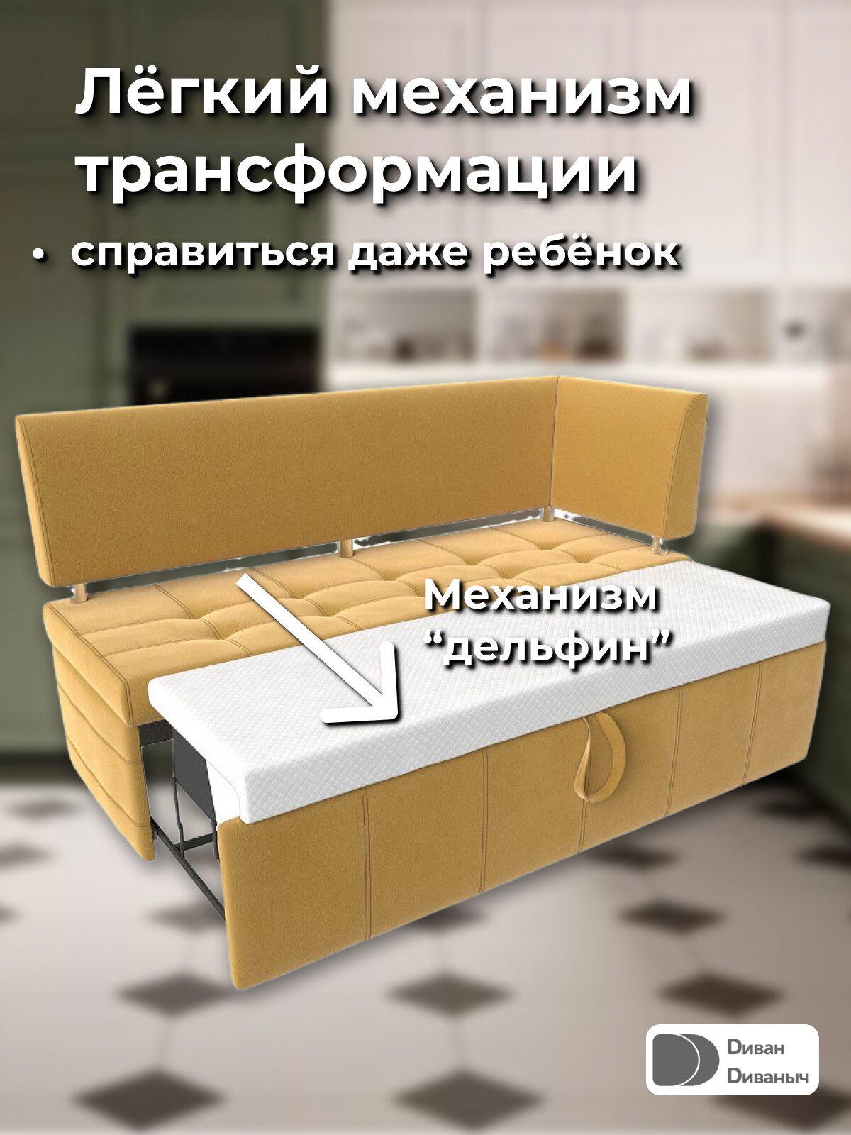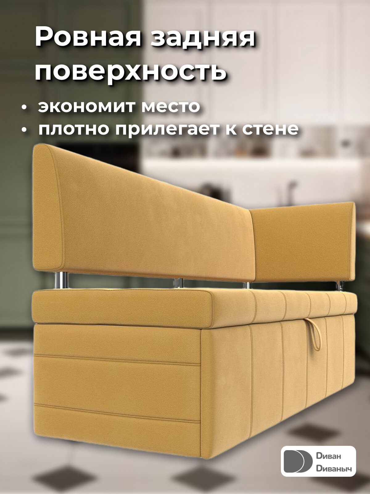 СохранитьДиван кухонный прямой Лотос со спальным местом 100х170 см, угол справа, Микровельвет желтый интересное: