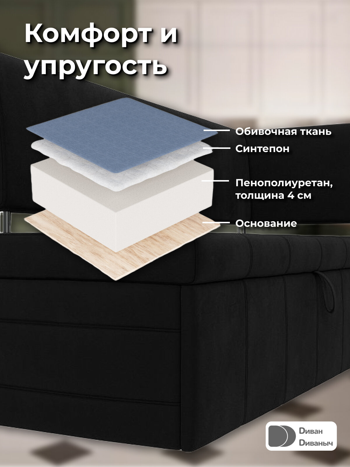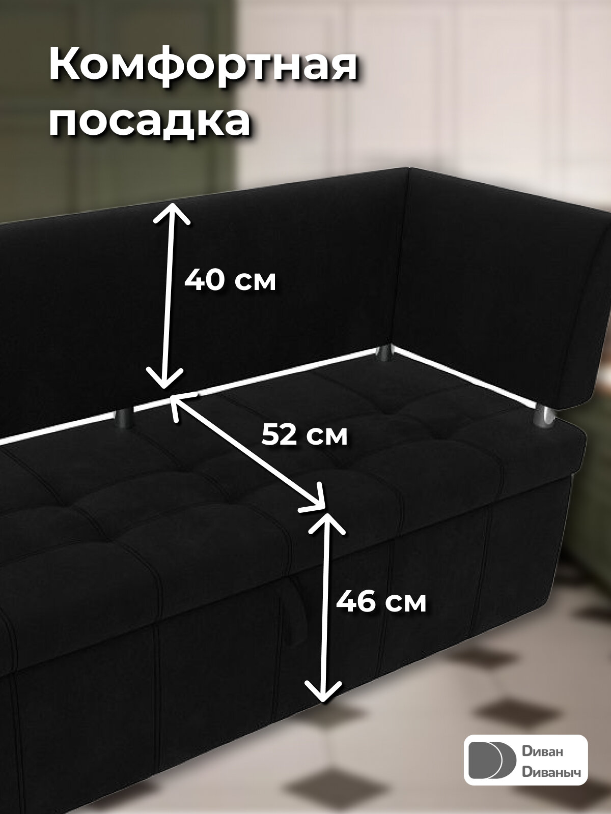 СохранитьДиван кухонный прямой Лотос со спальным местом 100х170 см, угол справа, Микровельвет черный интересное: