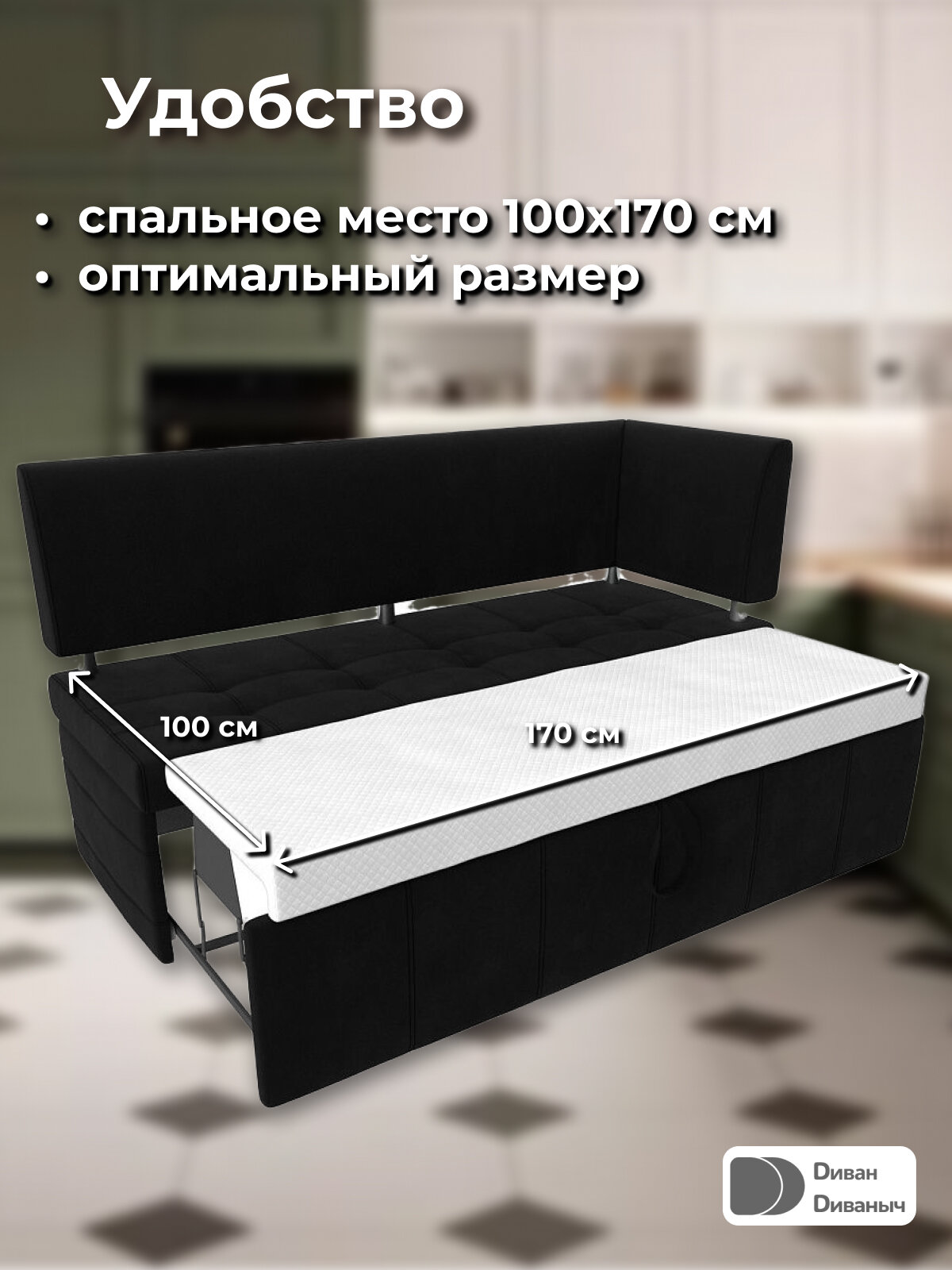 Диван кухонный прямой Лотос со спальным местом 100х170 см, угол слева, Микровельвет черный