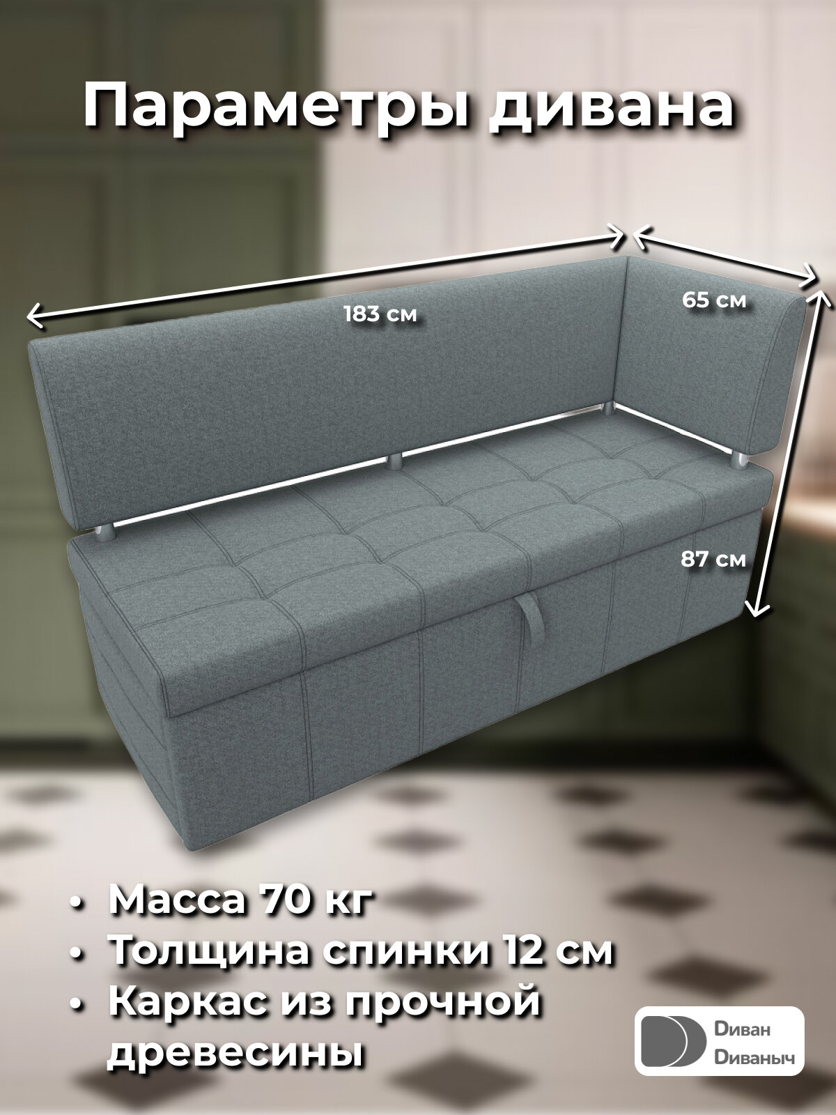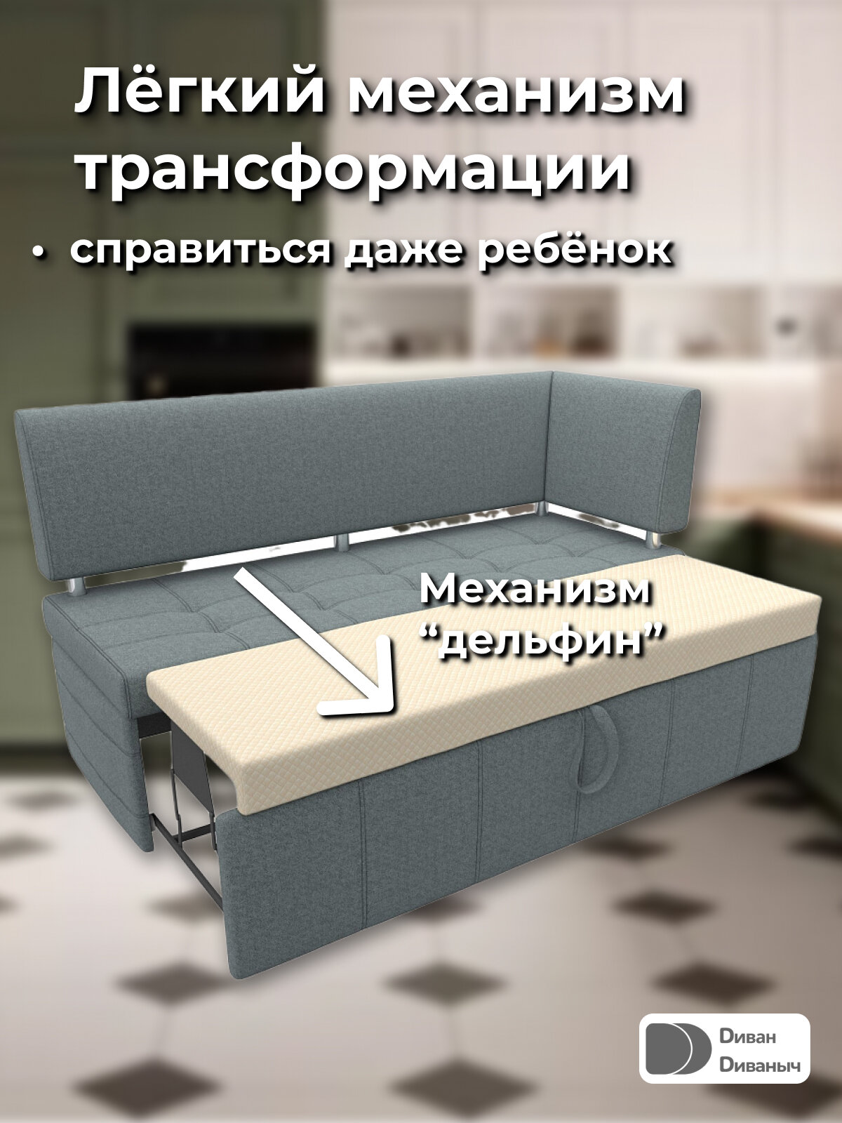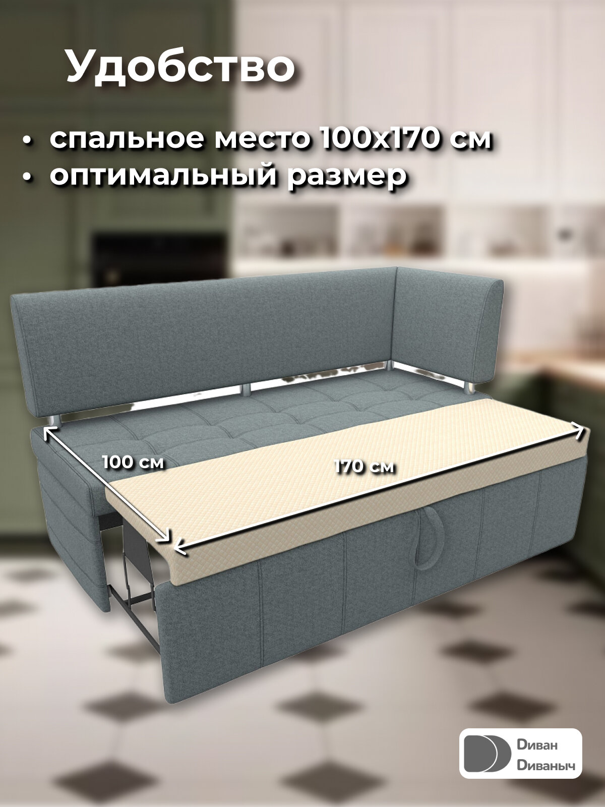 СохранитьДиван кухонный прямой Лотос со спальным местом 100х170 см, угол справа, Рогожка серый интересное: