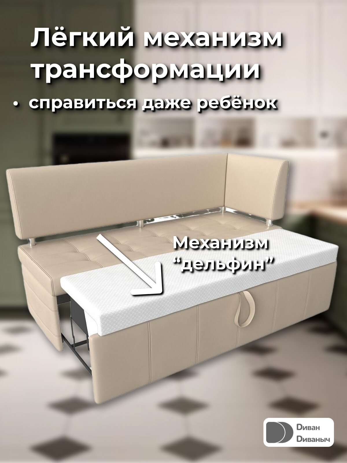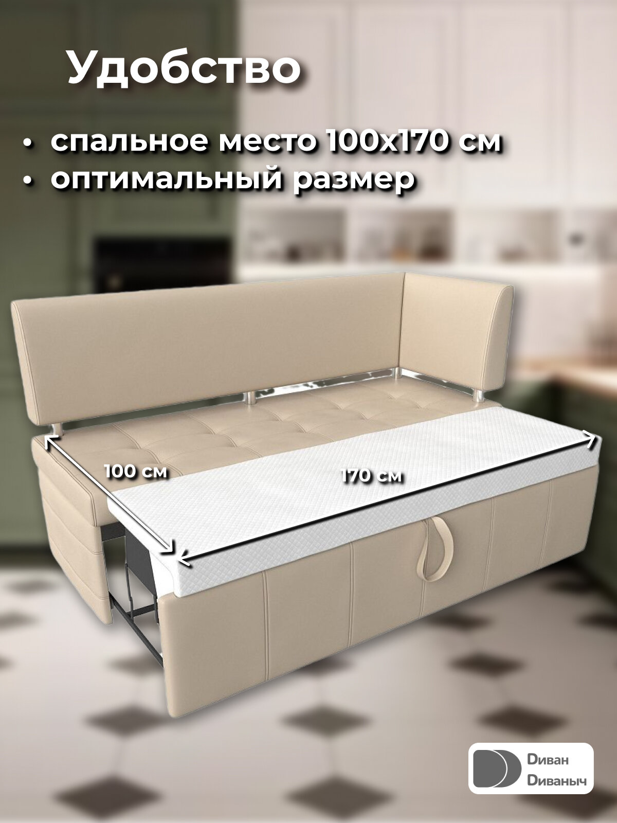 Диван кухонный прямой Лотос со спальным местом 100х170 см, угол слева, Экокожа бежевый
