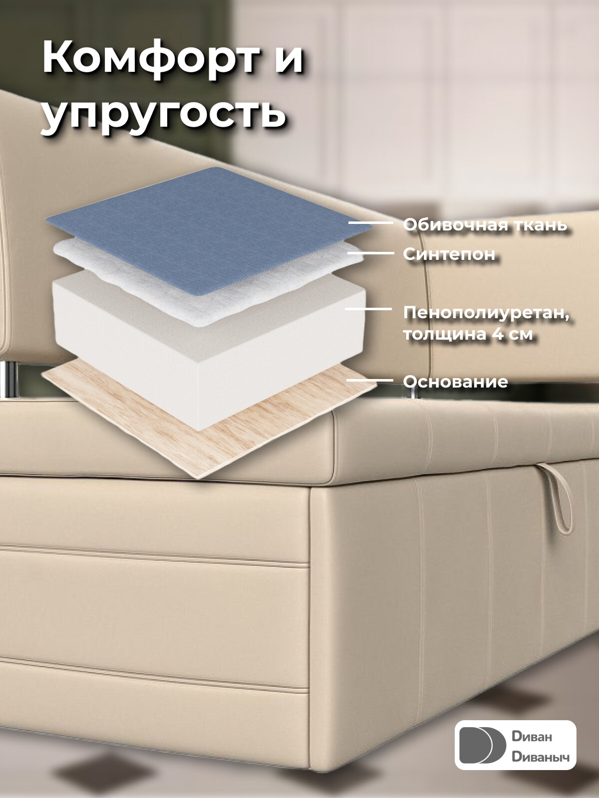 СохранитьДиван кухонный прямой Лотос со спальным местом 100х170 см, угол справа, Экокожа бежевый интересное: