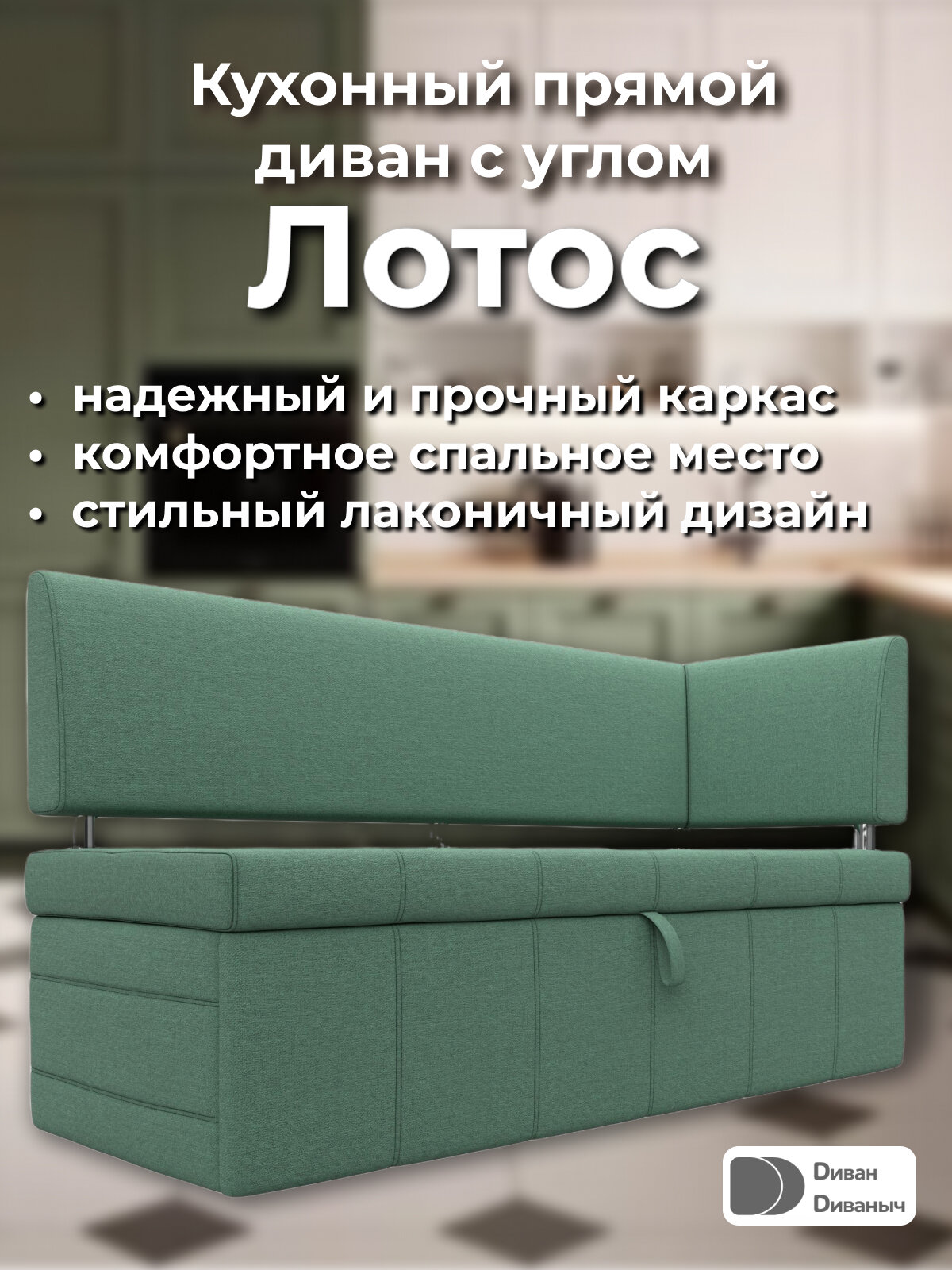 СохранитьДиван кухонный прямой Лотос со спальным местом 100х170 см, угол справа, Рогожка зеленый интересное: