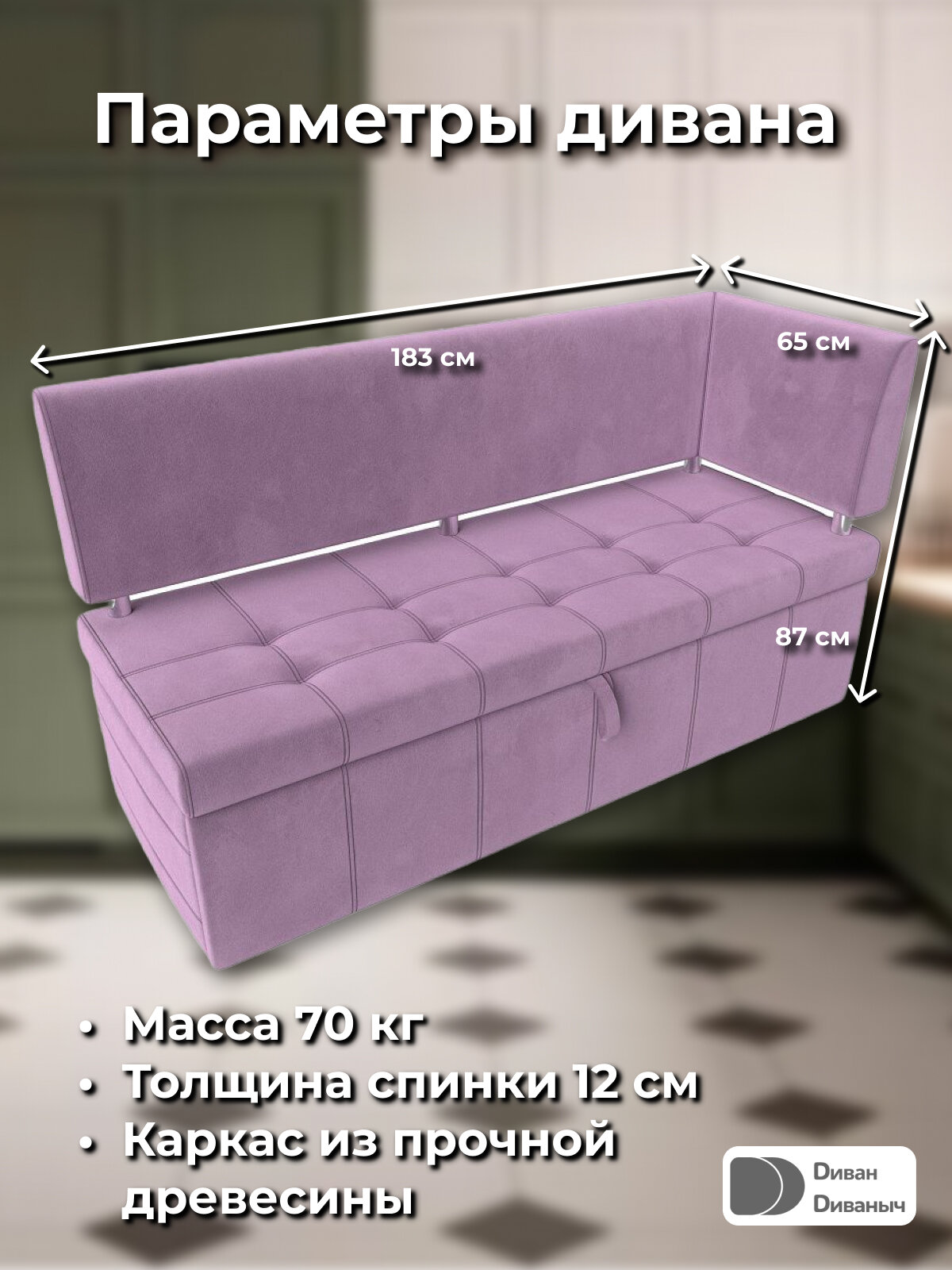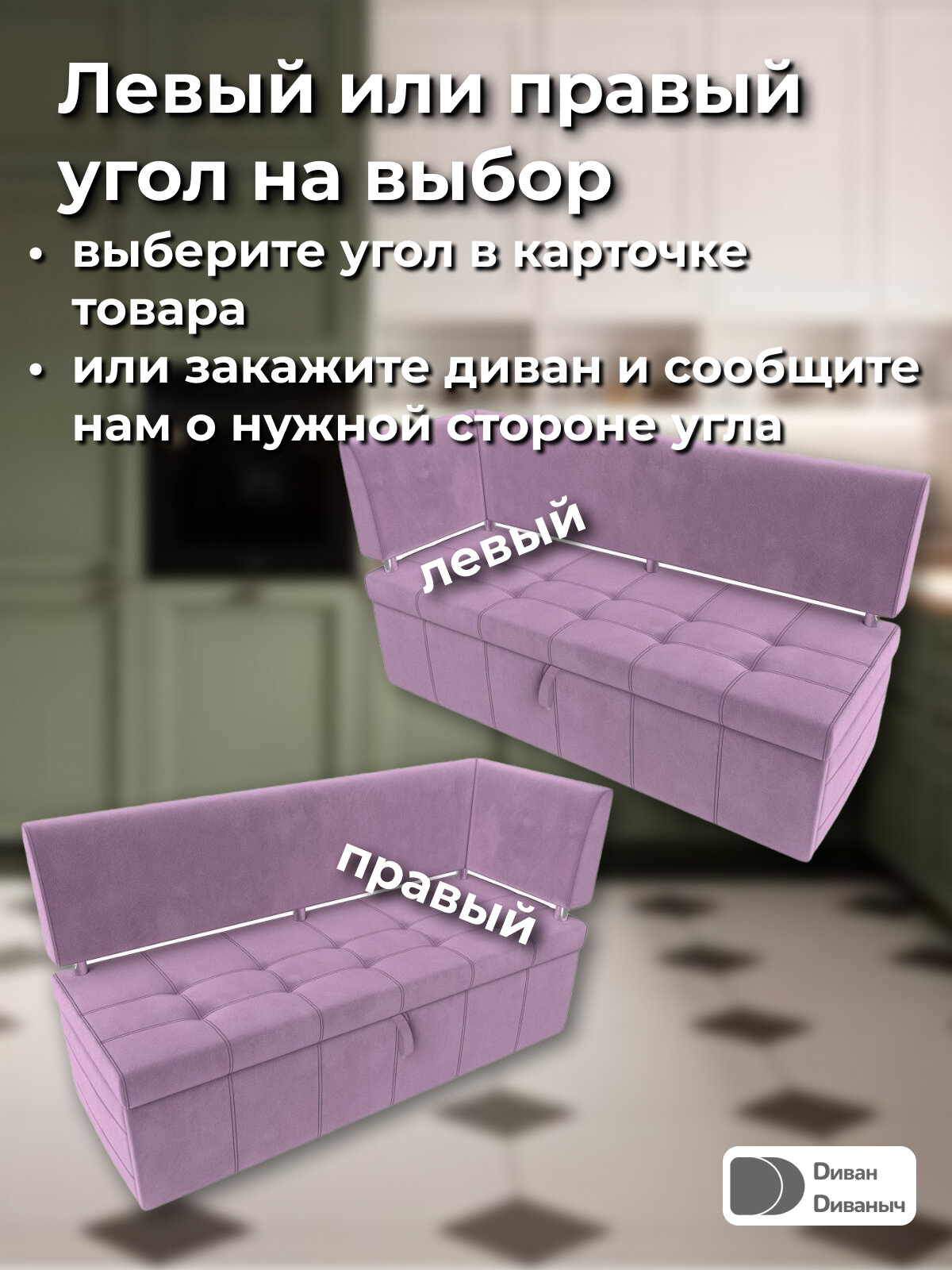 Диван кухонный прямой Лотос со спальным местом 100х170 см, угол слева, Микровельвет фиолетовый