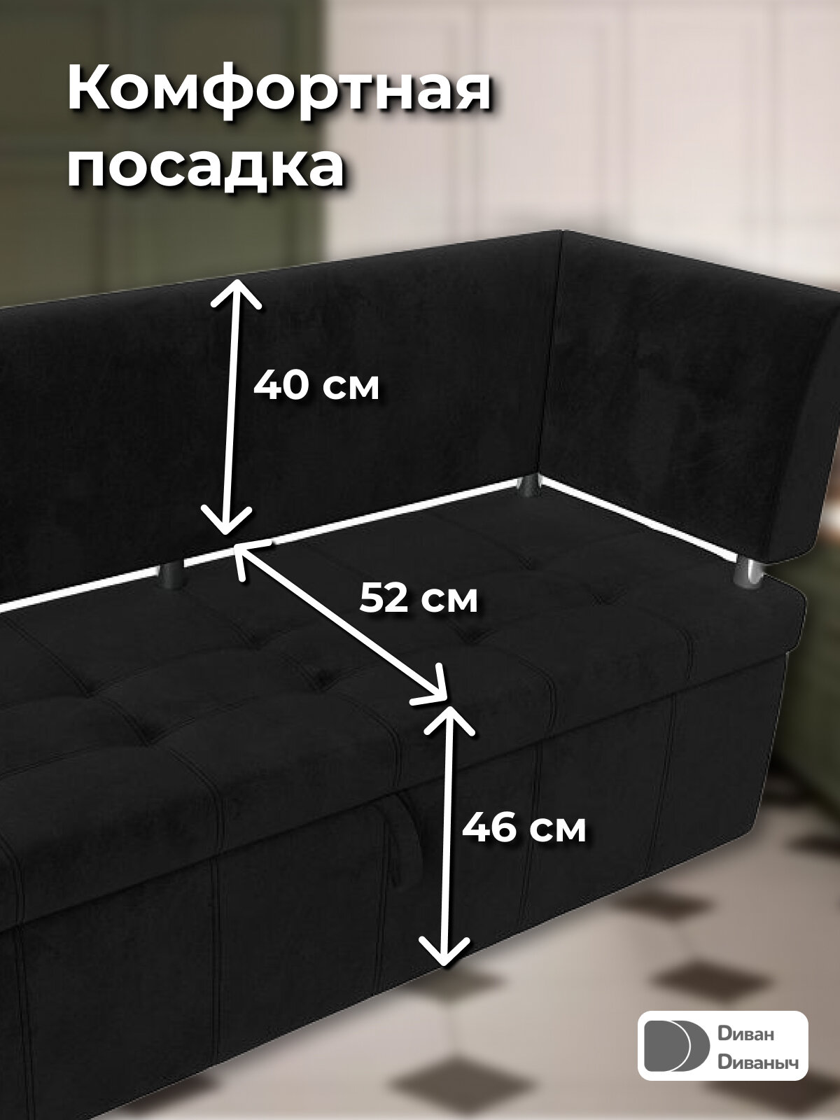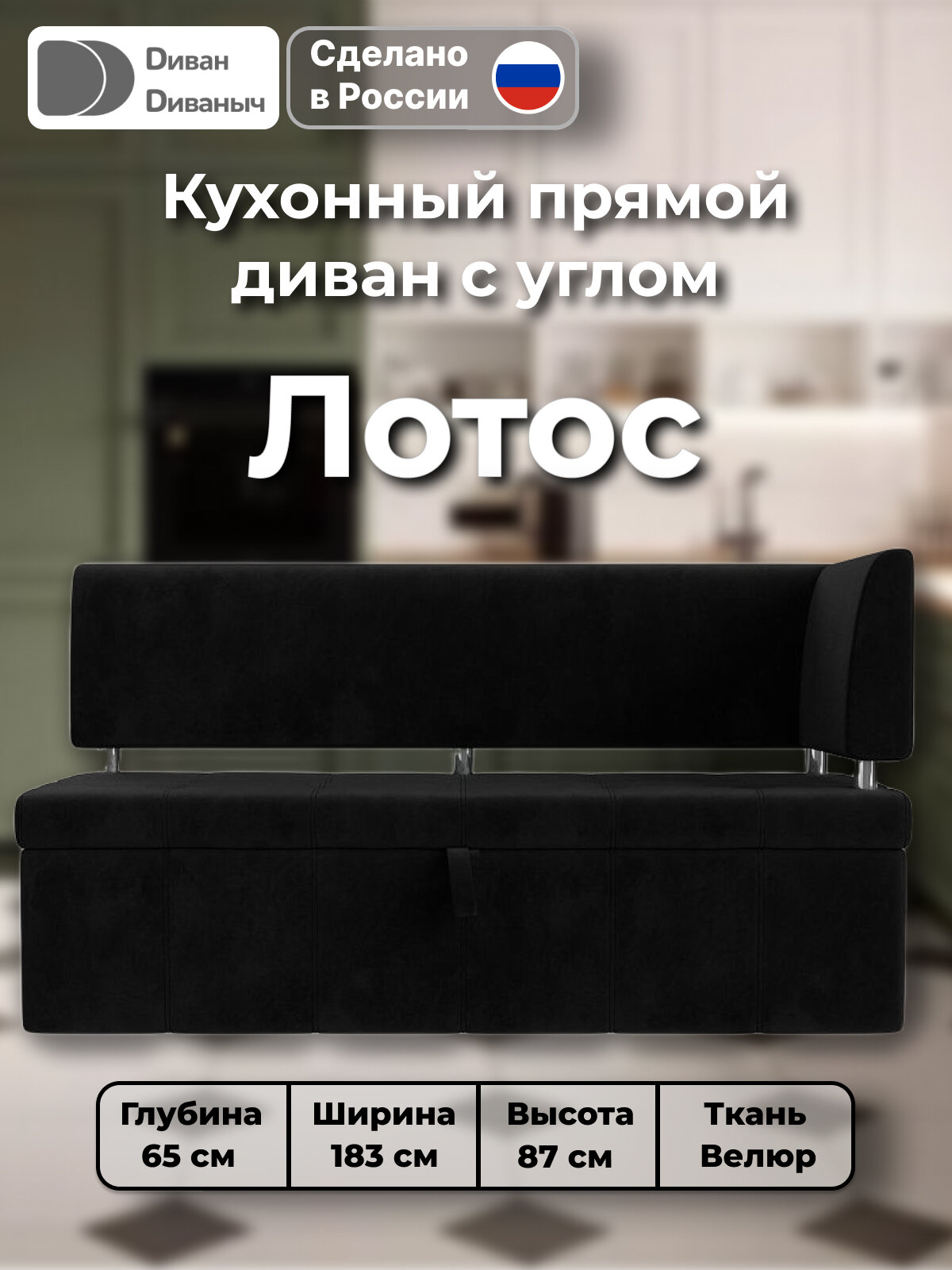 СохранитьДиван кухонный прямой Лотос со спальным местом 100х170 см, угол справа, Велюр черный интересное: