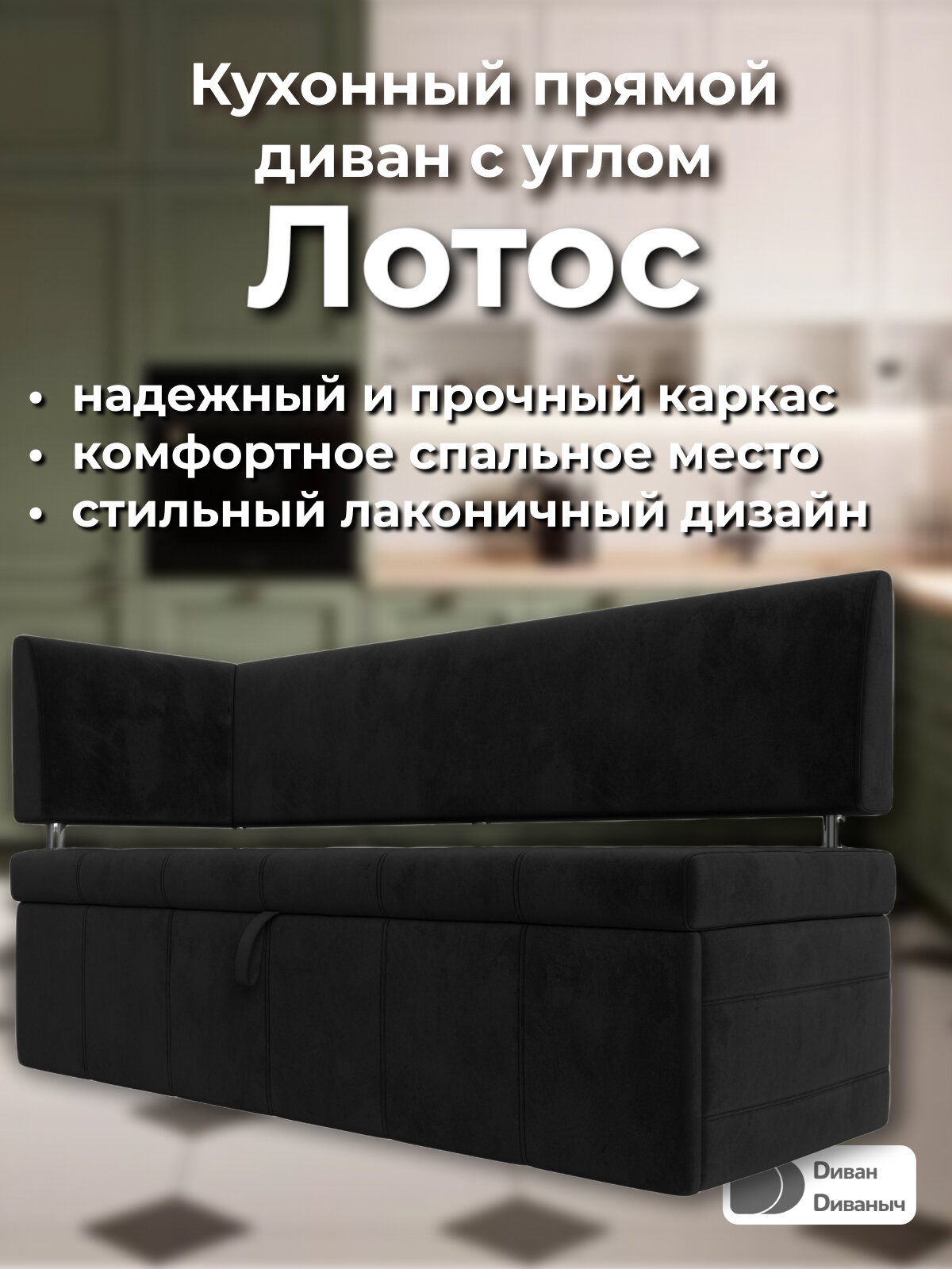 СохранитьДиван кухонный прямой Лотос со спальным местом 100х170 см, угол слева, Велюр черный интересное: