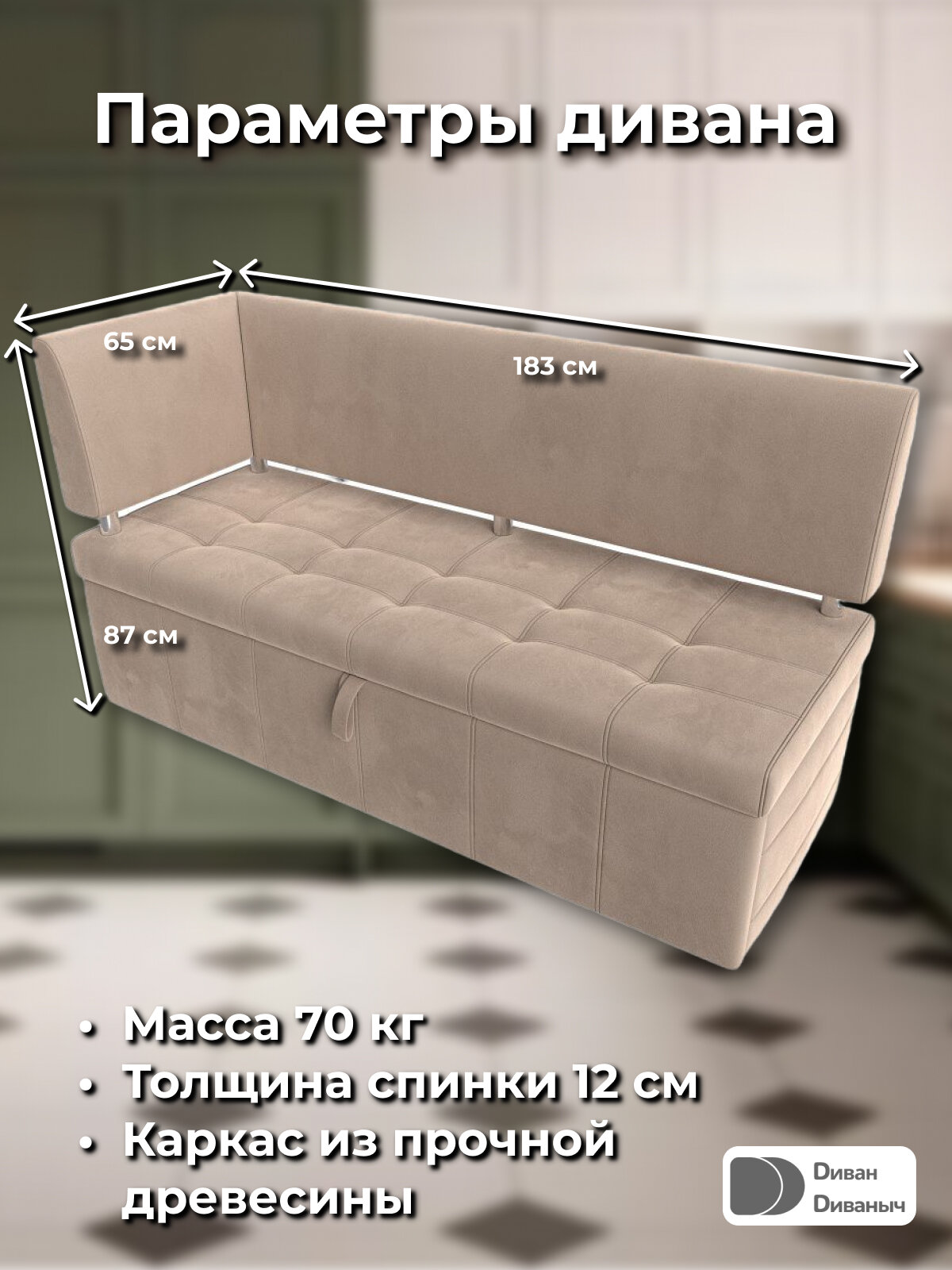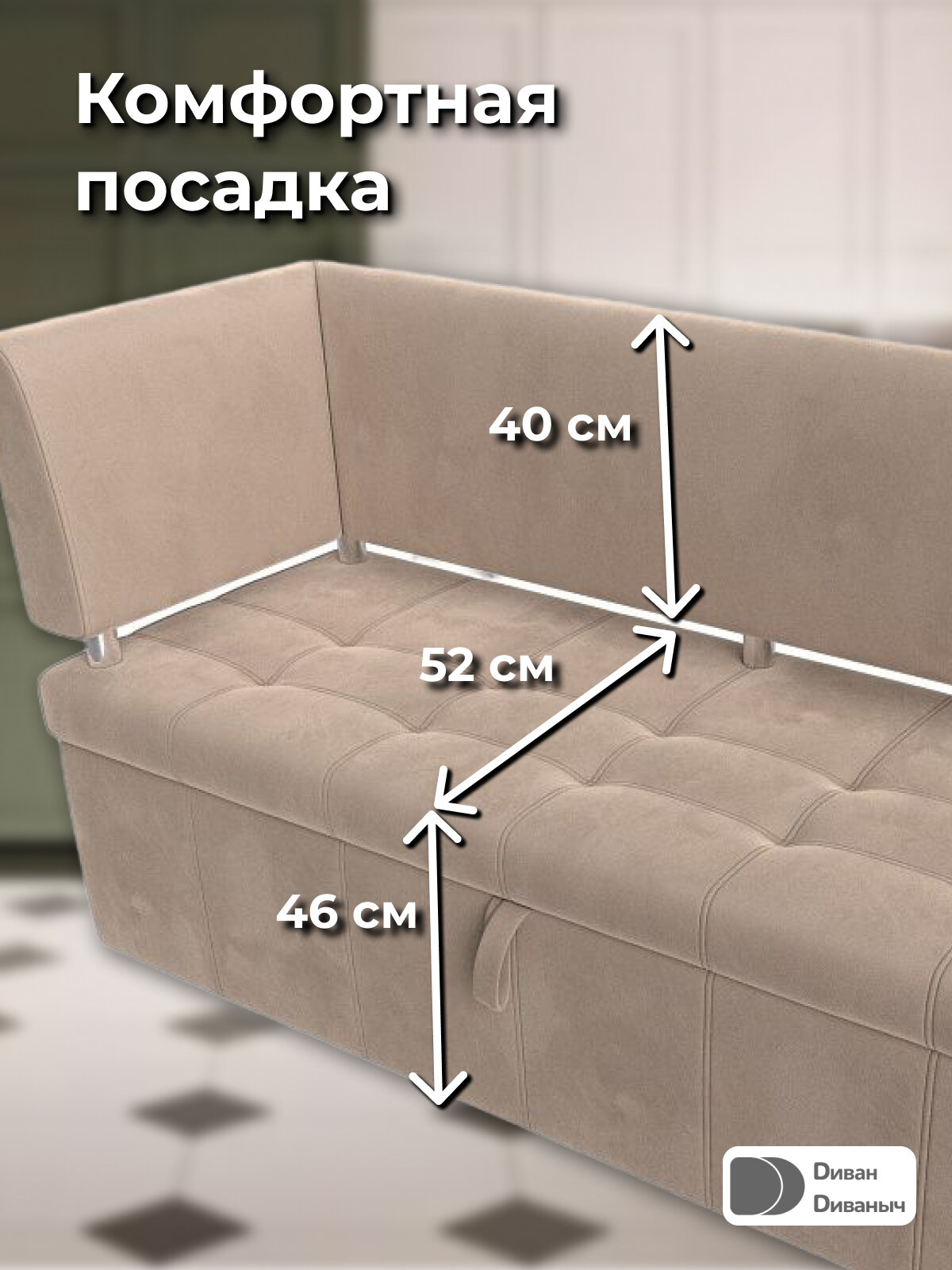СохранитьДиван кухонный прямой Лотос со спальным местом 100х170 см, угол слева, Велюр бежевый интересное: