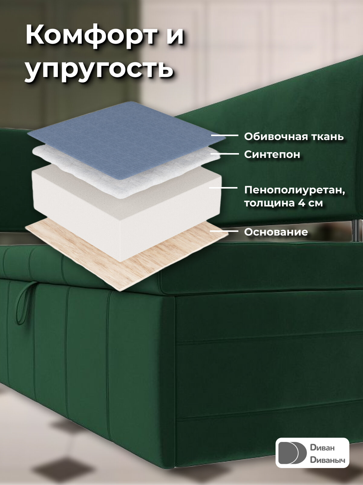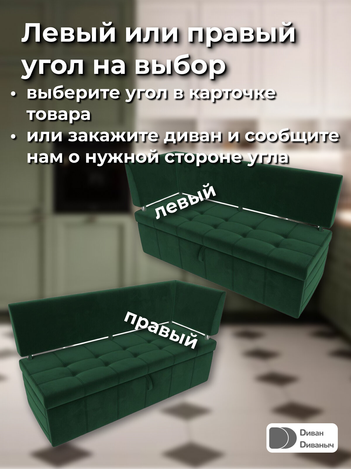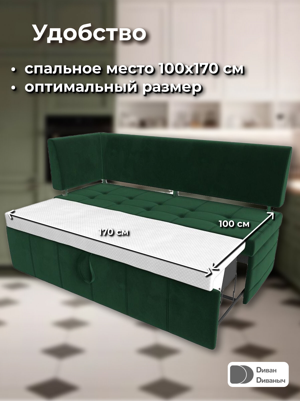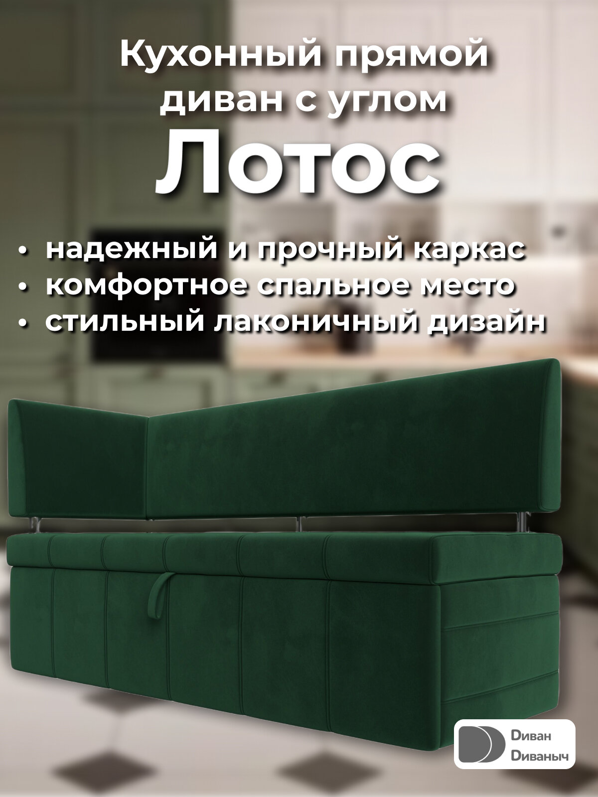 Диван кухонный прямой Лотос со спальным местом 100х170 см, угол справа, Велюр зеленый