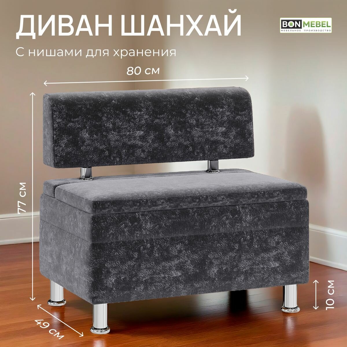 Диван Шанхай, BONMEBEL, ТК Корица (KORIZA), 800 диван прямой с нишей для хранения.