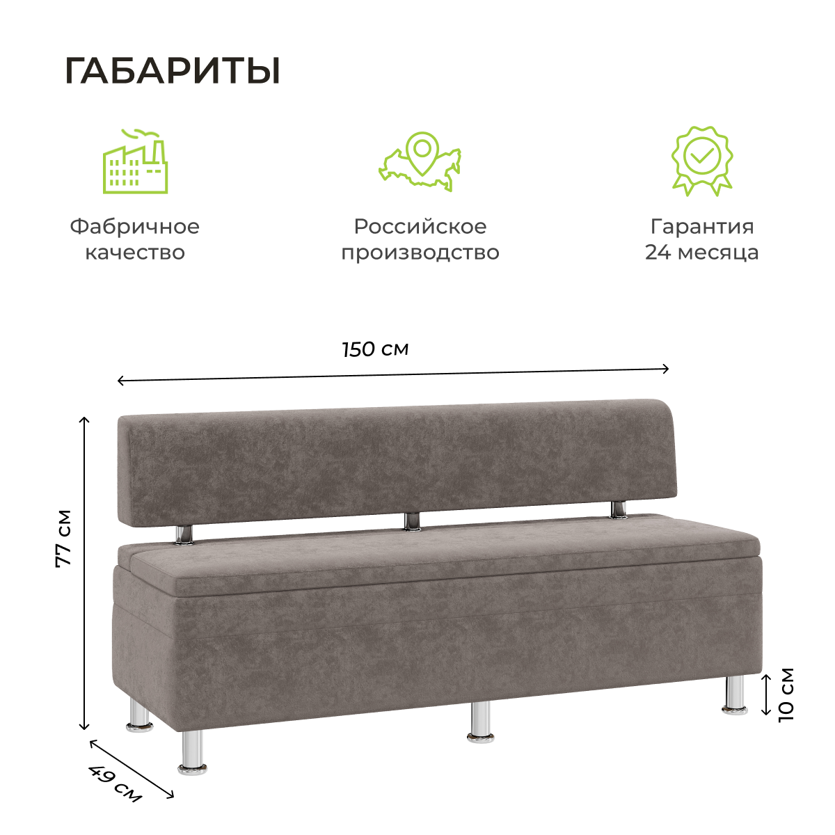 Диван Шанхай, BONMEBEL, ТК Графит (ESPRESSO), 1500 диван прямой с нишей для хранения.
