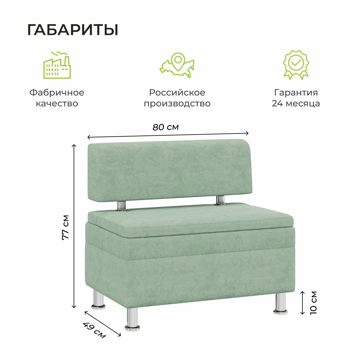 Диван Шанхай, BONMEBEL, ТК Мята (MISTGREEN), 600 диван прямой с нишей для хранения.