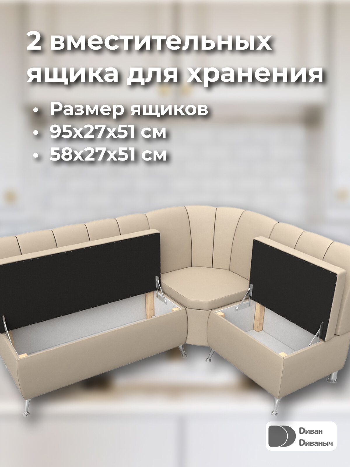 Купить Диван кухонный угловой Вест с двумя ящиками для хранения, правый угол, Экокожа
