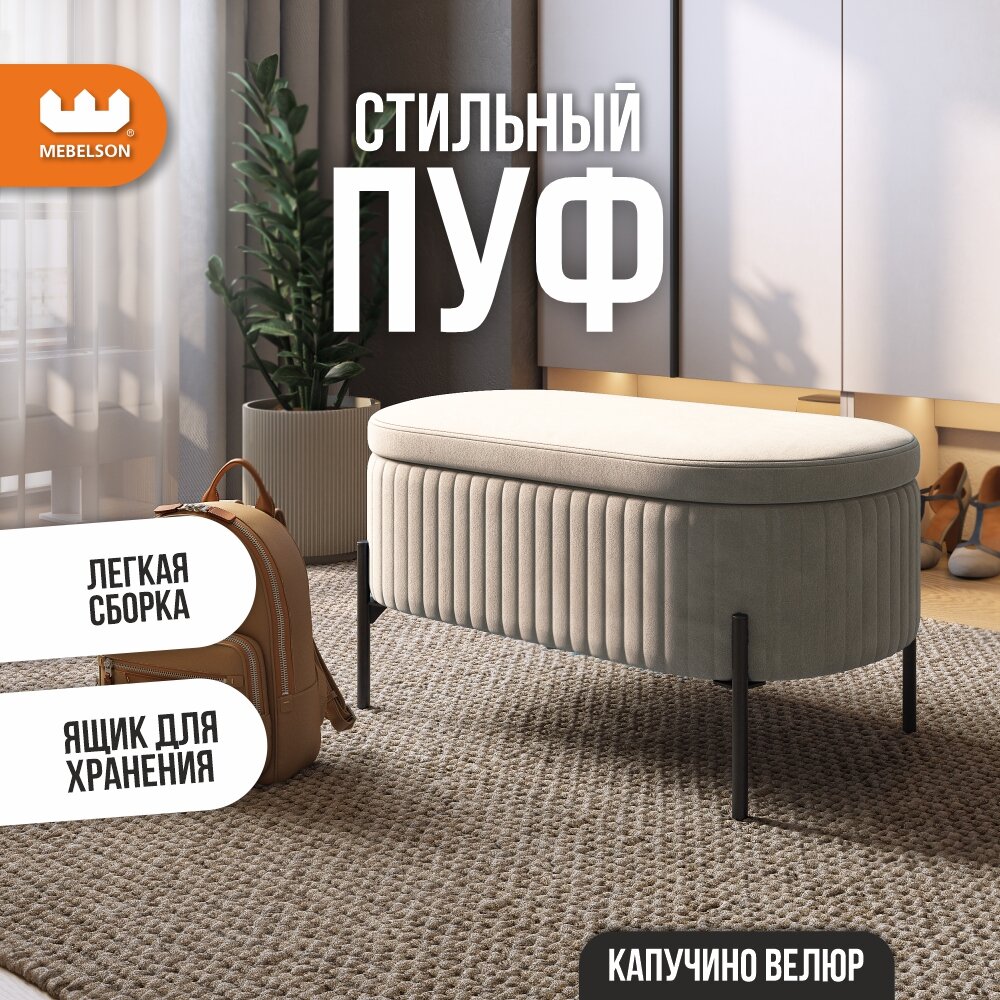 Мягкий пуф "Винни" с ящиком для хранения, цвет Капучино (велюр), 80*43*40 см, MEBELSON интересное: