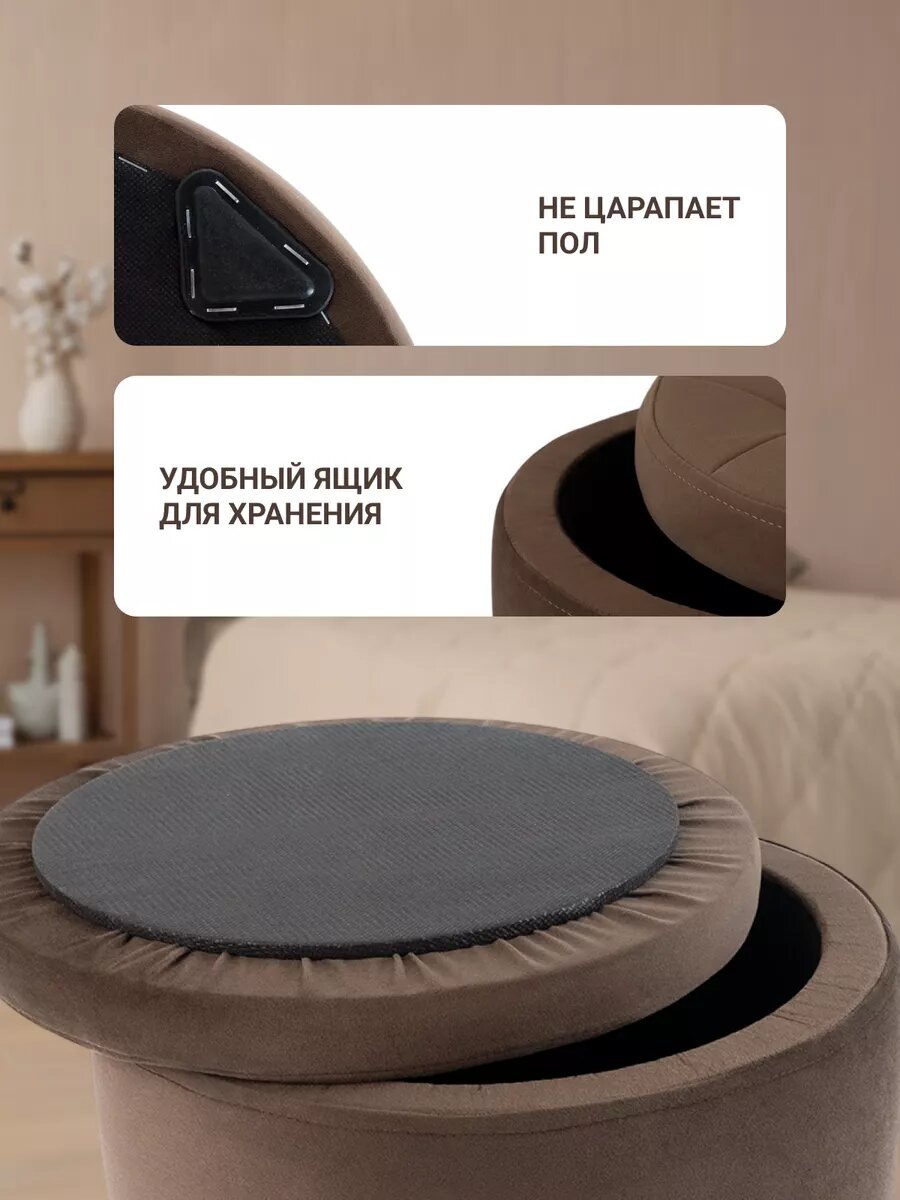 Пуфик для прихожей и спальни с ящиком мягкий круглый интересное: