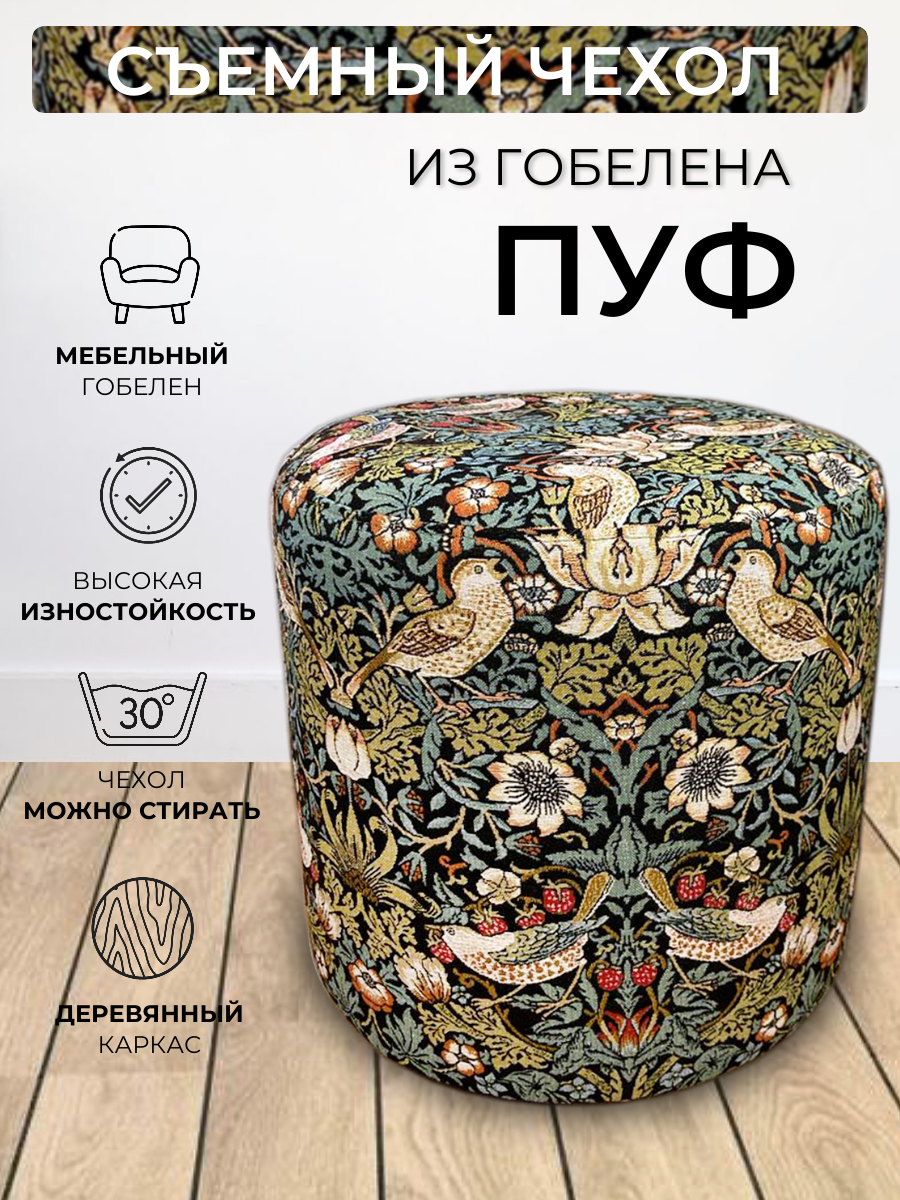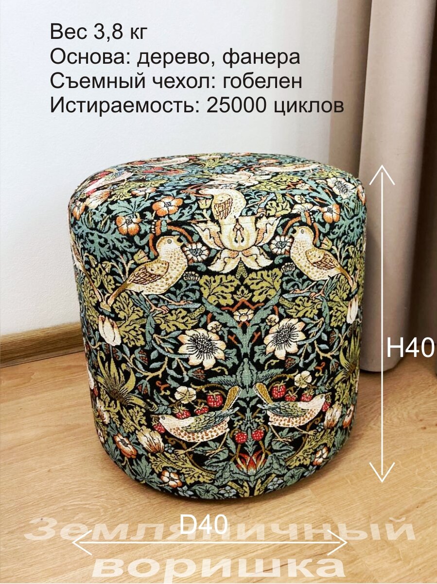 Пуфик круглый для прихожей спальни гостиной коридора, гобелен Земляничный Воришка Бирюза D40см интересное: