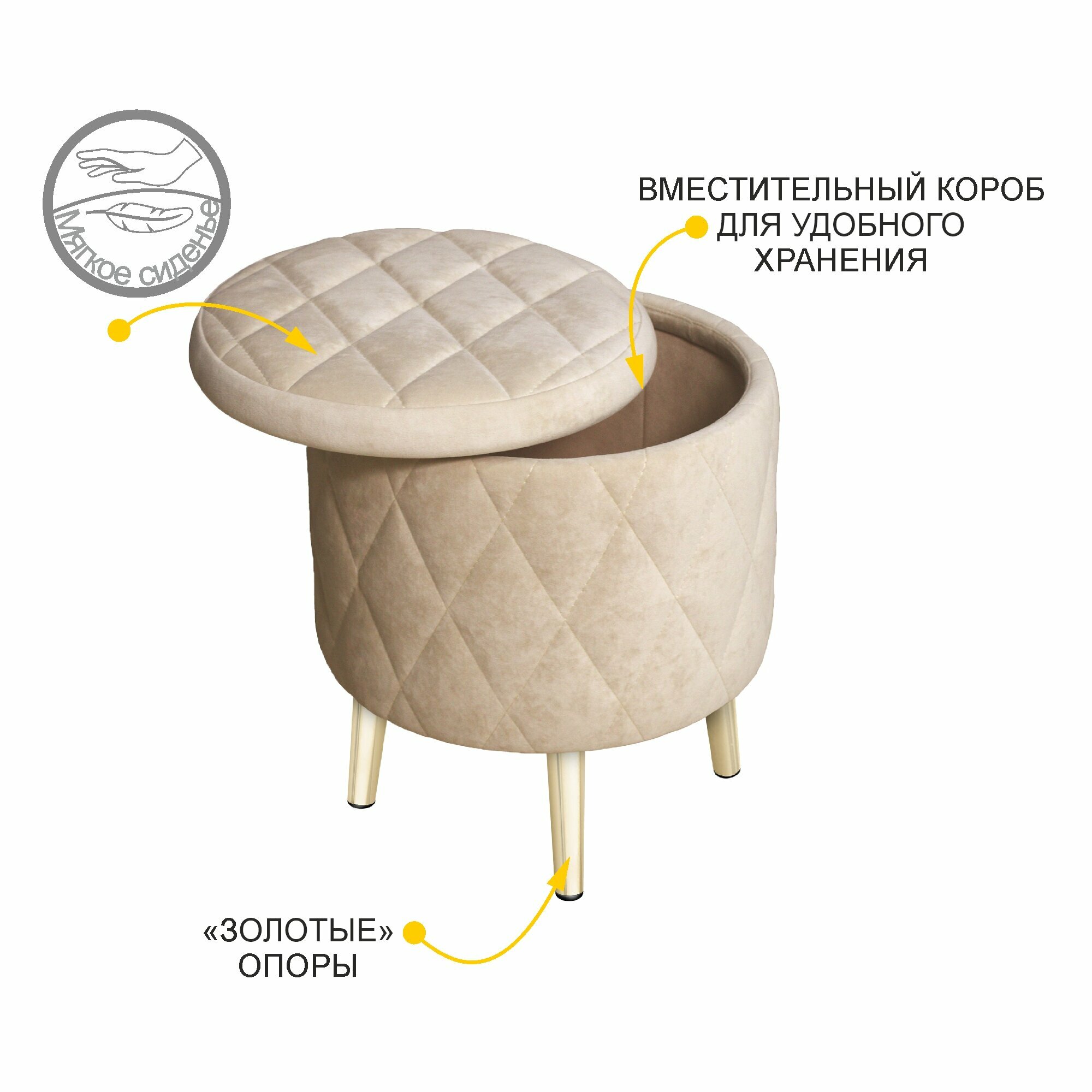 Пуф Монро 10 (05) Бежевый/Золото, 40х40х45 см интересное: