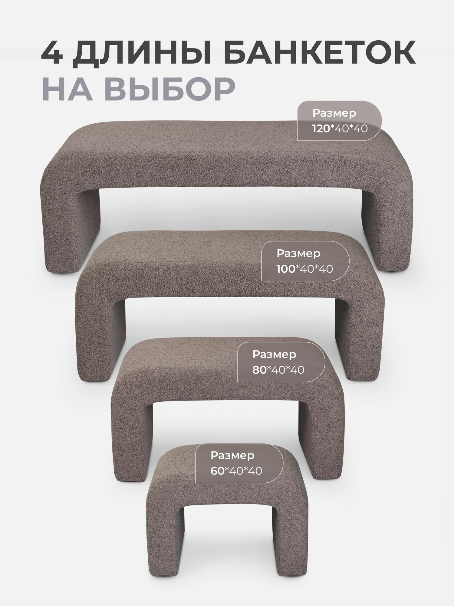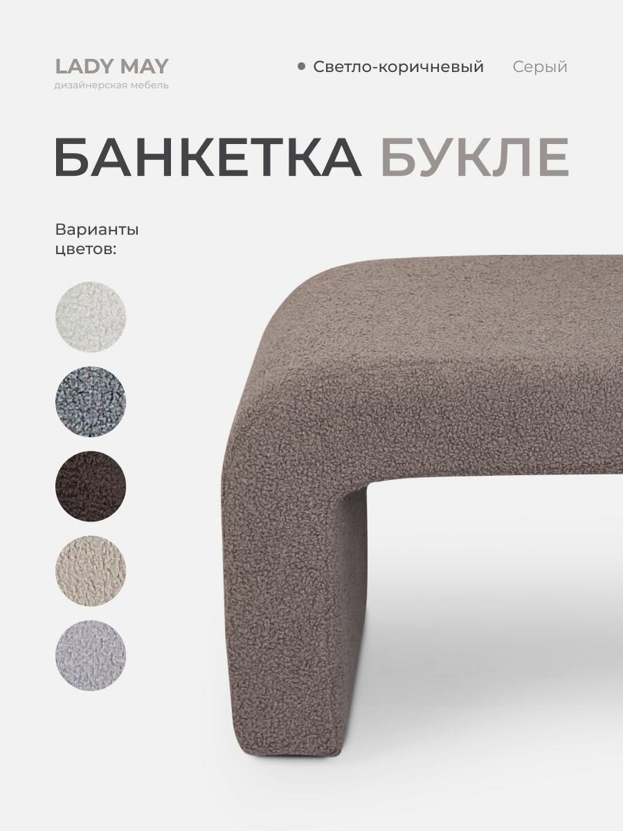 Пуфик дизайнерский в прихожую, для туалетного столика LADY MAY Банкетка 100 х 40 х 40 см, Букле
