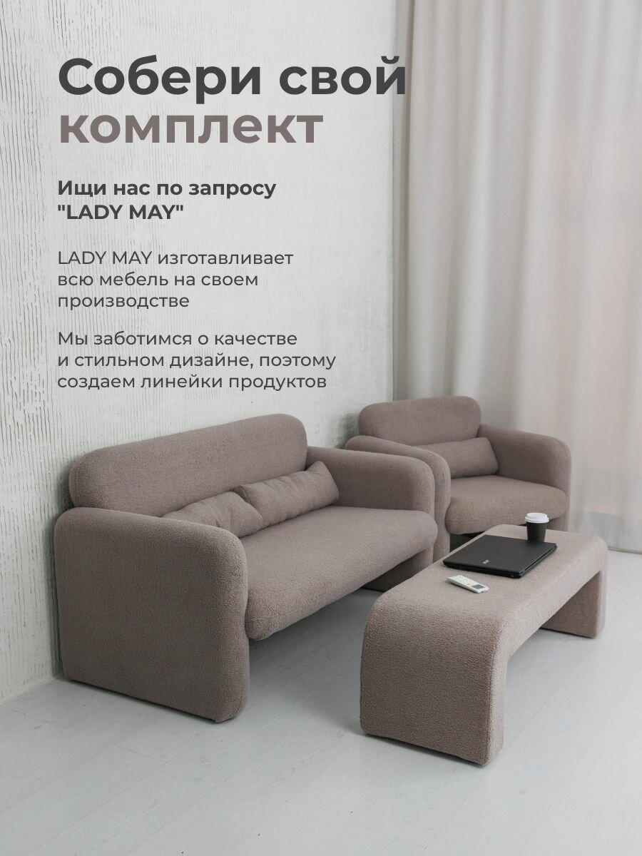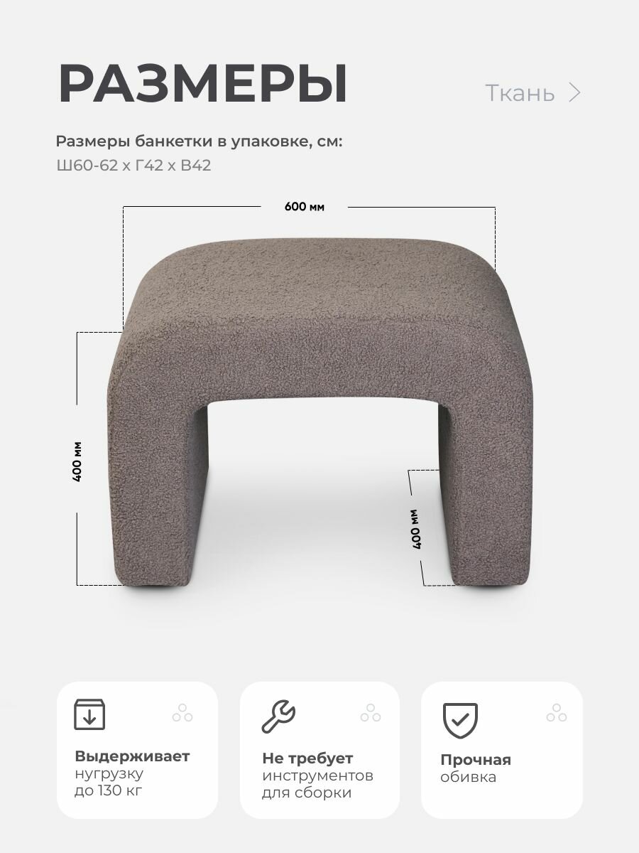 СохранитьПуфик дизайнерский в прихожую, для туалетного столика LADY MAY Банкетка 60 х 40 х 40 см, Букле интересное: