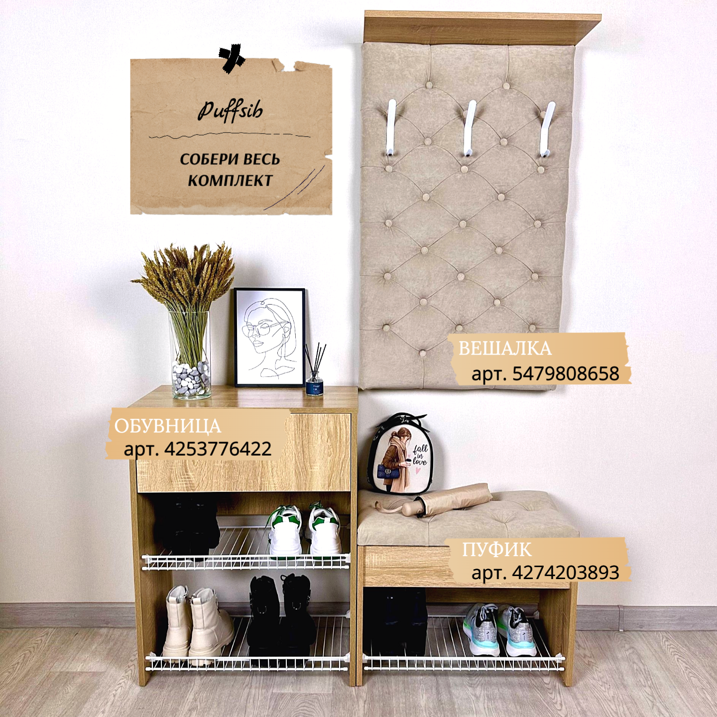 СохранитьПуфик в прихожую с обувницей и ящиком для хранения вещей Puffsib А-61, дуб сонома/бежевый интересное: