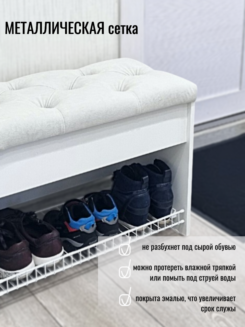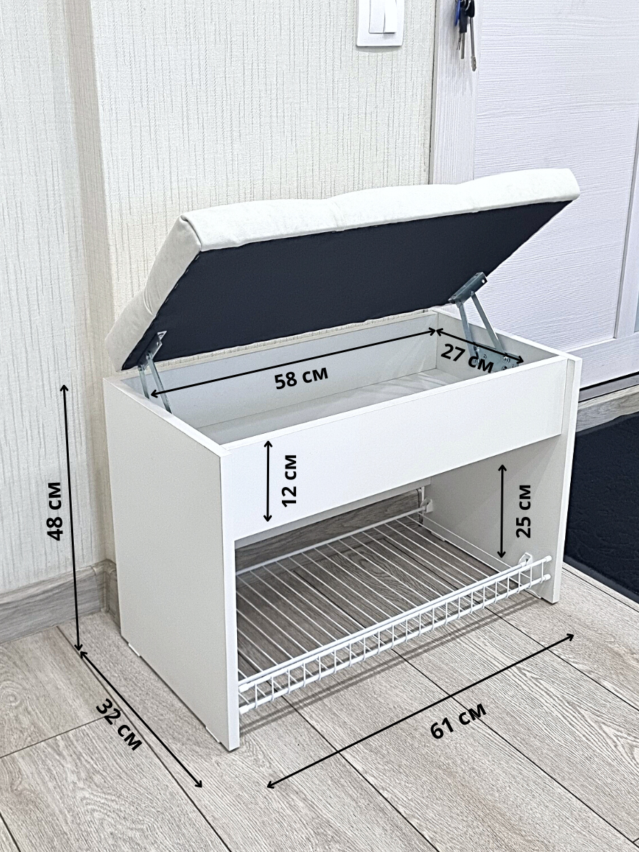Пуфик в прихожую с обувницей и ящиком для хранения вещей Puffsib А-61, белый