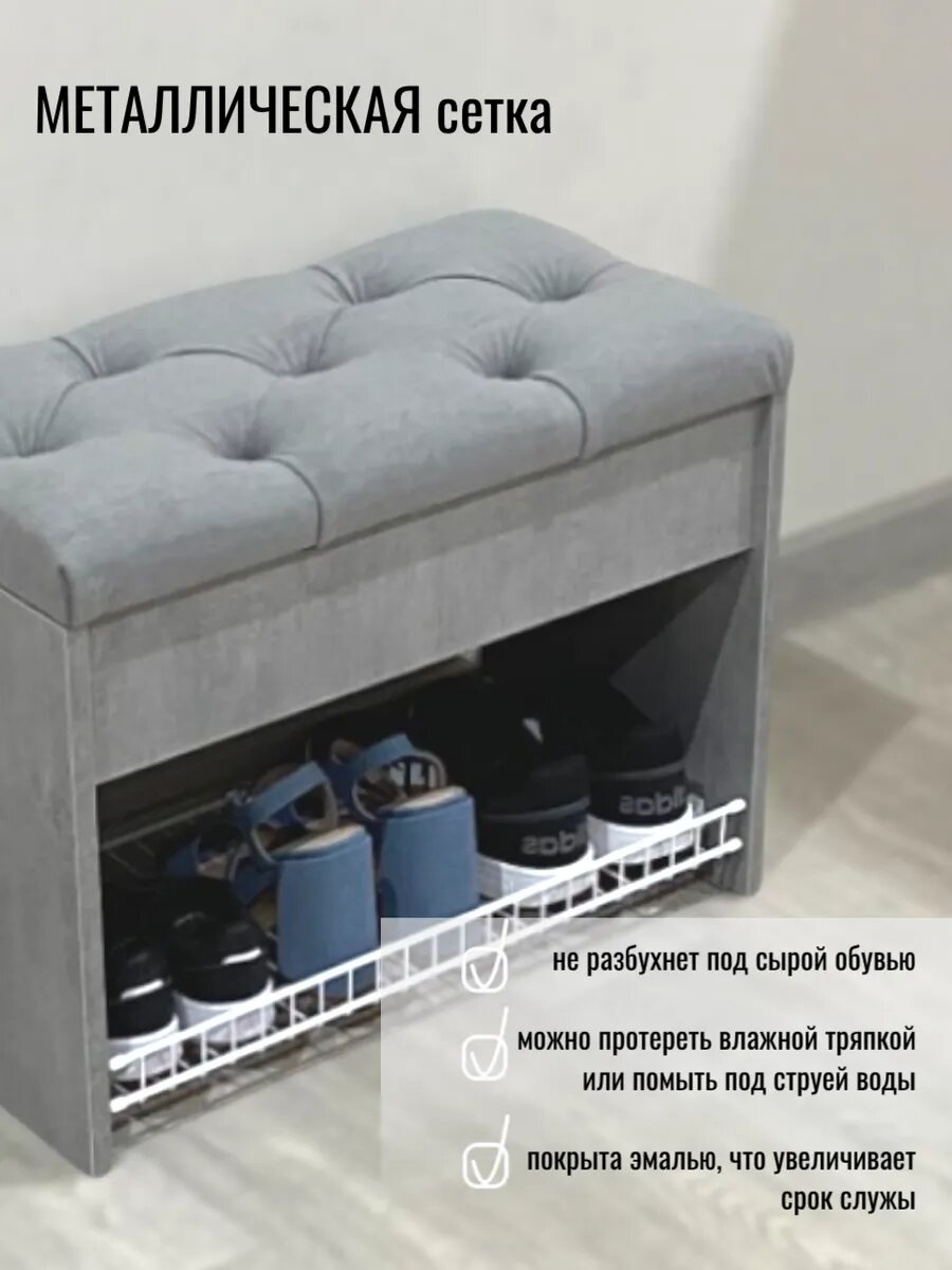 СохранитьПуфик в прихожую с обувницей и ящиком для хранения вещей Puffsib А-61, сириус/серый велюр интересное: