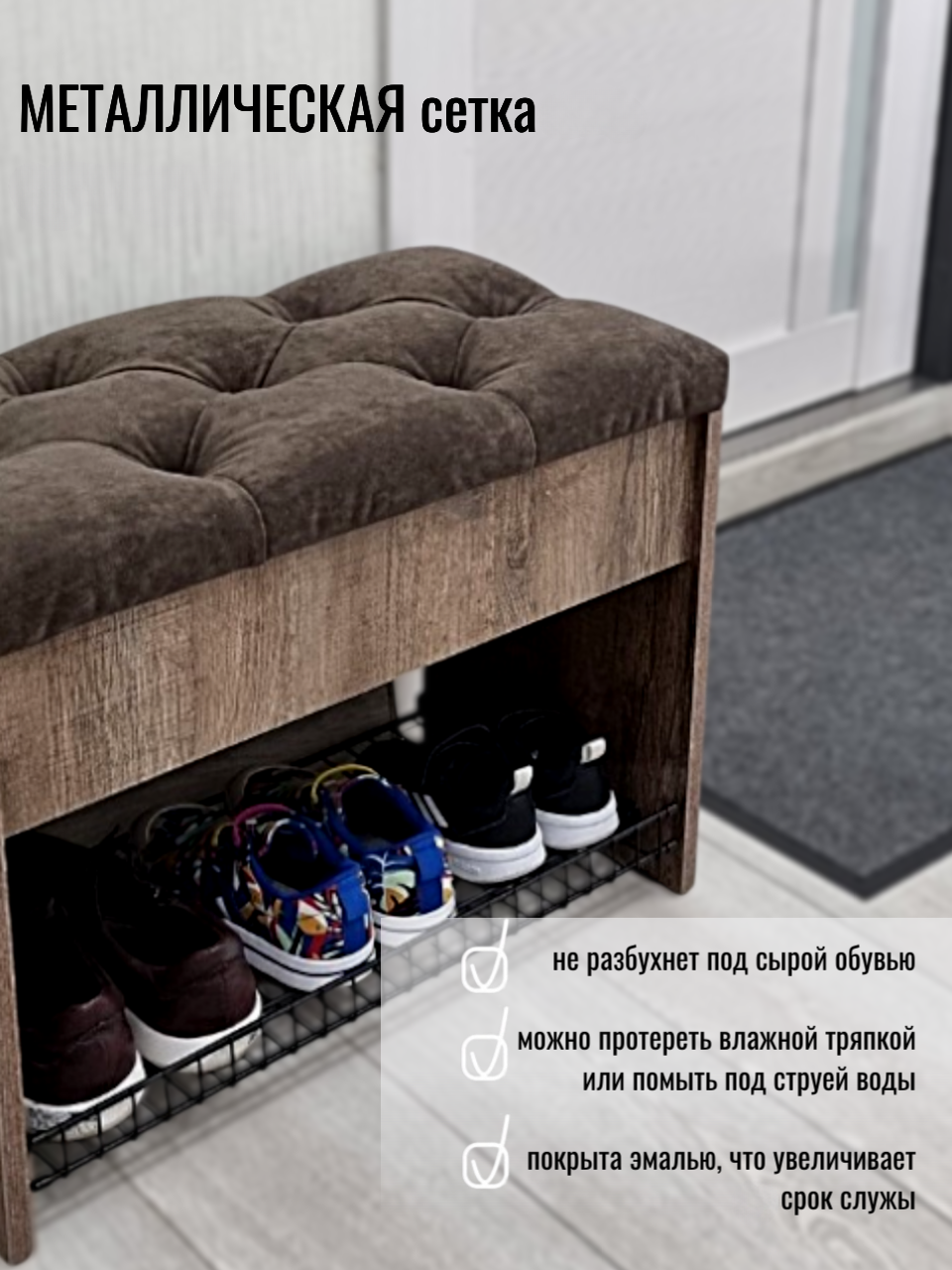 Пуфик в прихожую с обувницей и ящиком для хранения вещей Puffsib А-61, планка/коричневый велюр