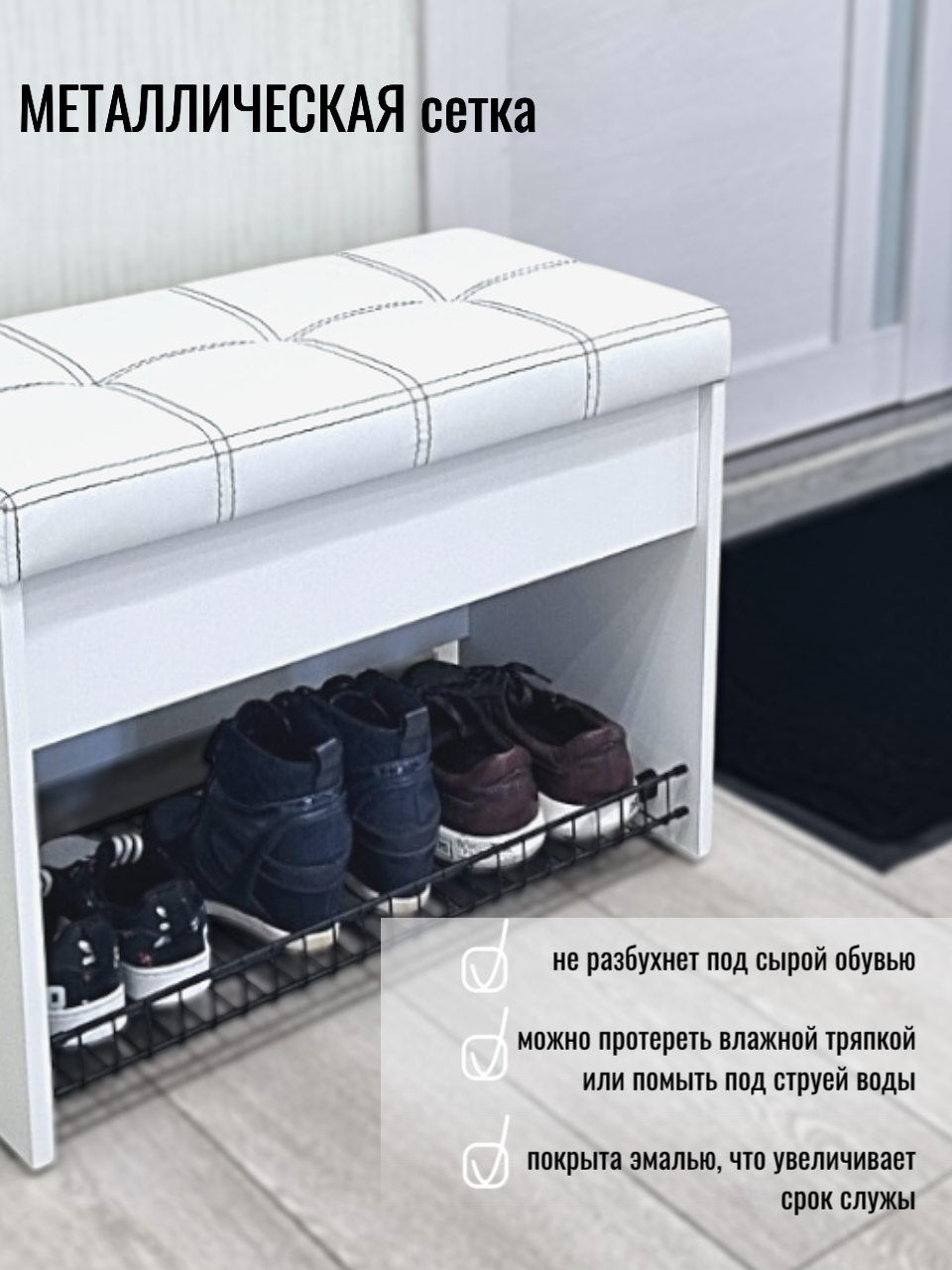 СохранитьПуфик в прихожую с обувницей и ящиком для хранения вещей Puffsib А-61, белый/черный интересное:
