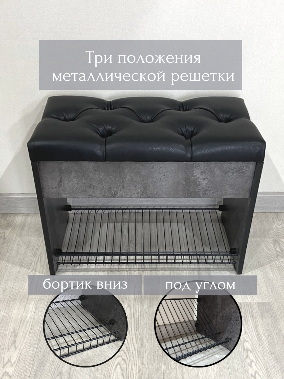 Купить Пуфик в прихожую с обувницей и ящиком для хранения вещей Puffsib А-61, цемент темный/черный