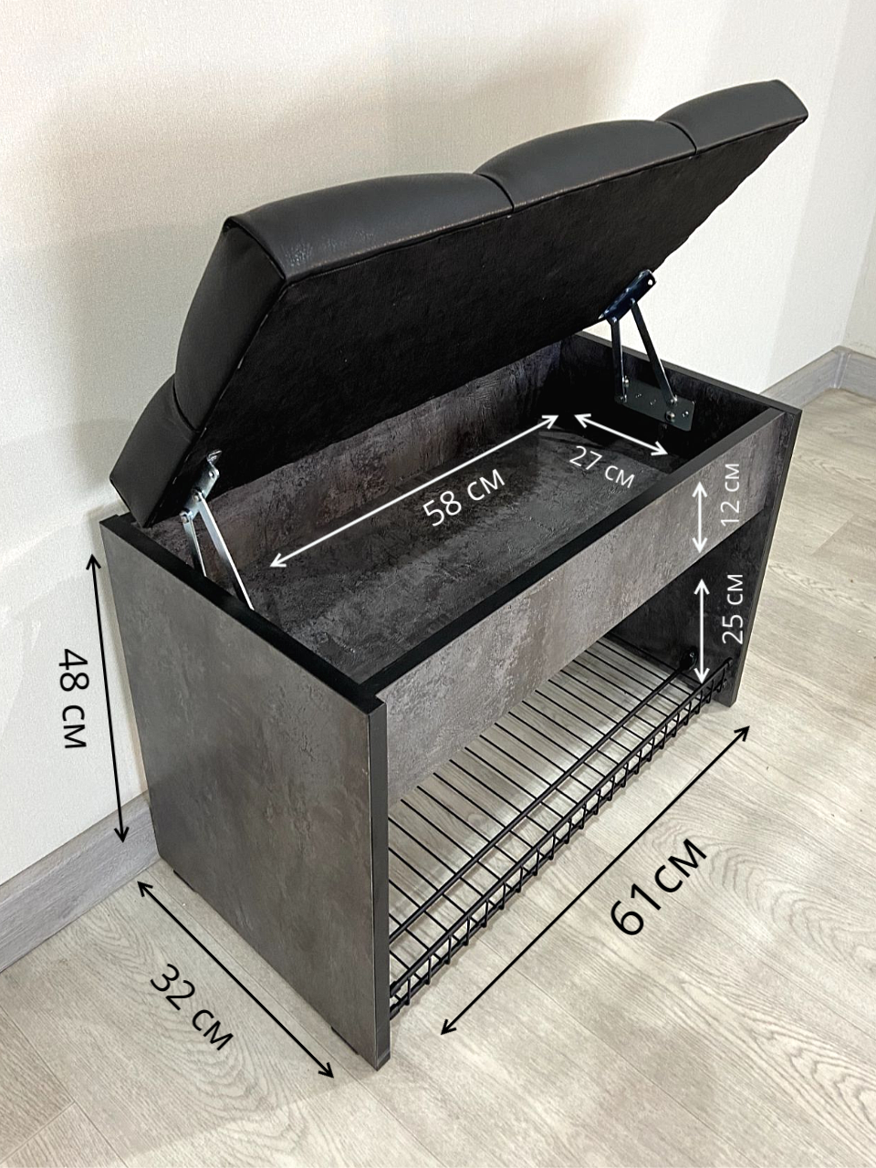 Пуфик в прихожую с обувницей и ящиком для хранения вещей Puffsib А-61, цемент темный/серый