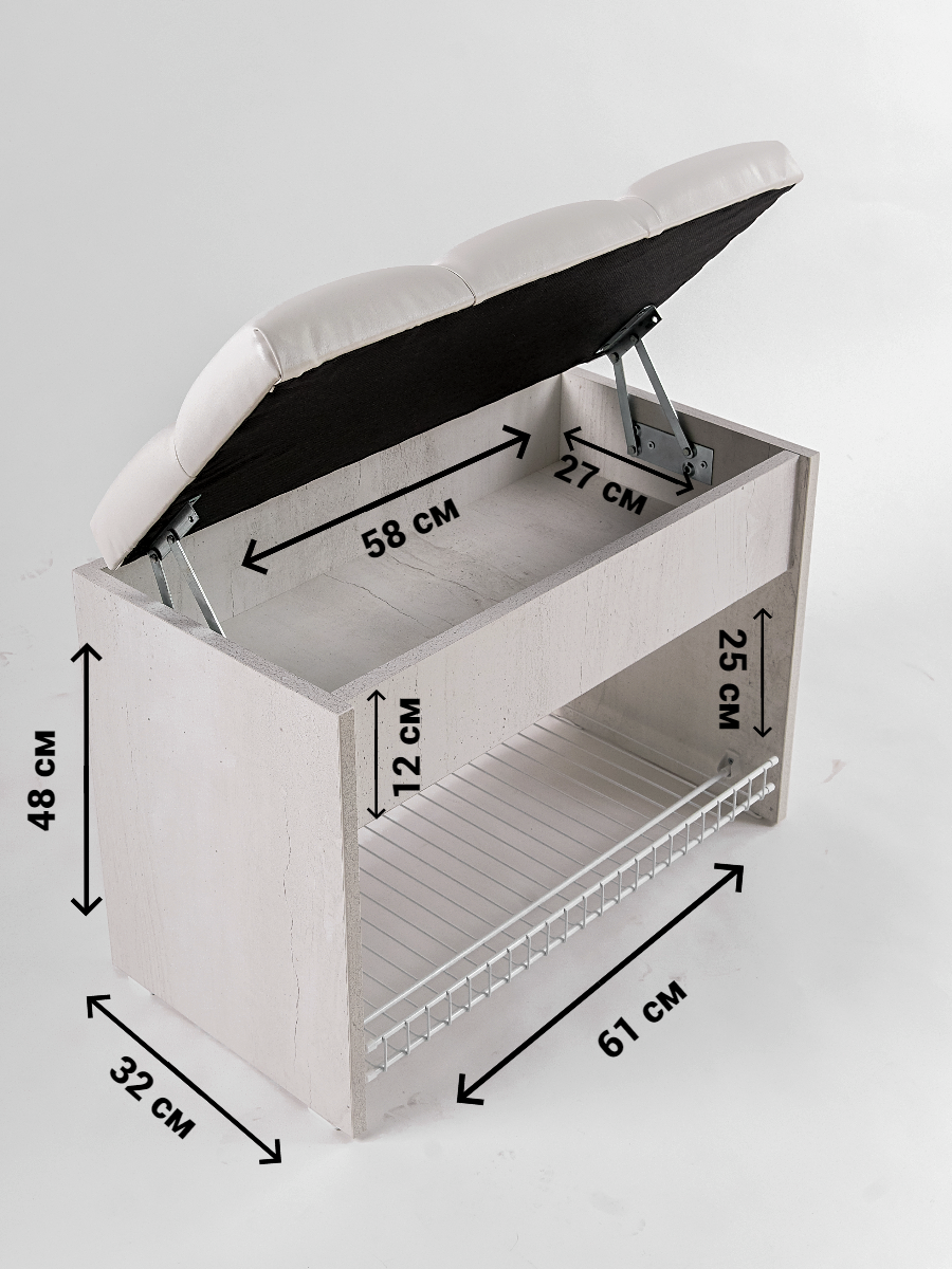 Пуфик в прихожую с обувницей и ящиком для хранения вещей Puffsib А-61, белый/молочный