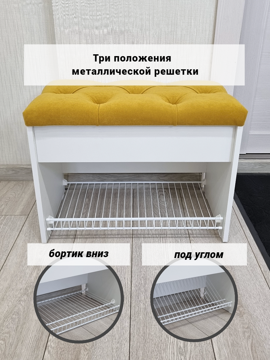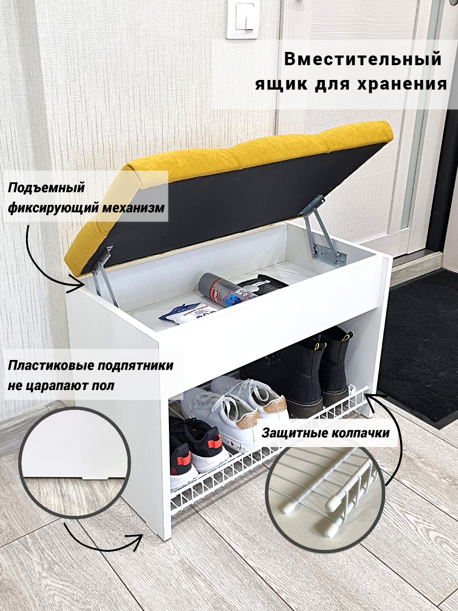СохранитьПуфик в прихожую с обувницей и ящиком для хранения вещей Puffsib А-61, белый/горчичный интересное: