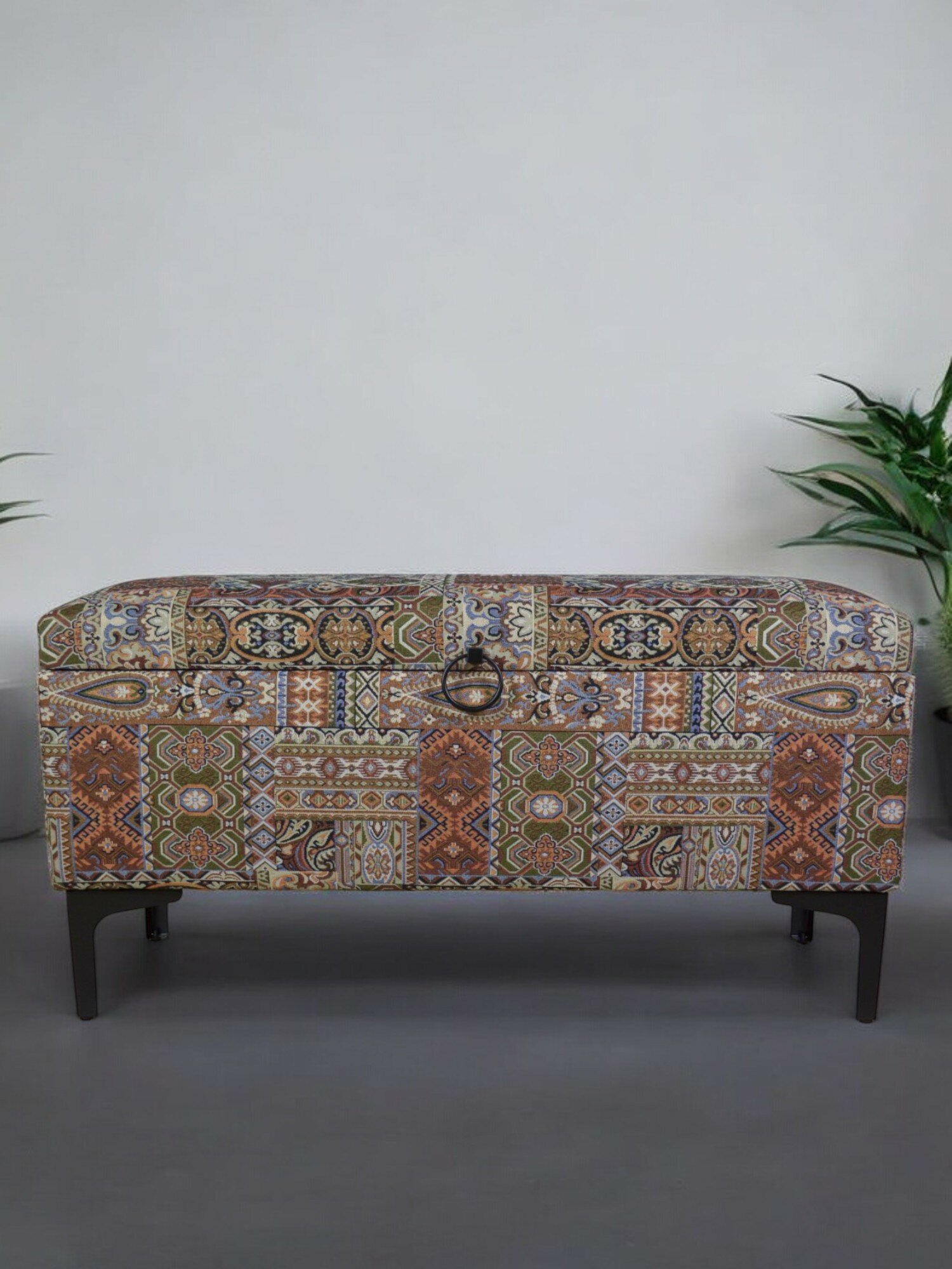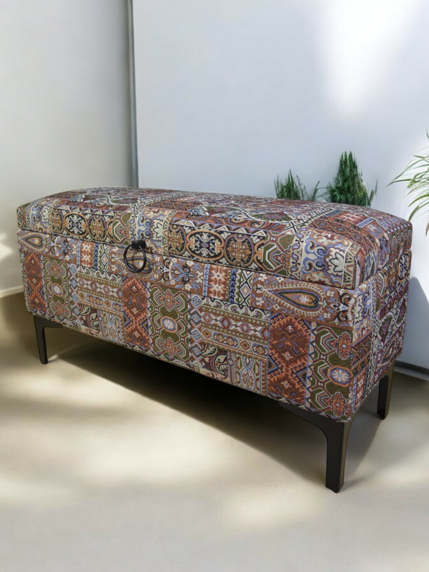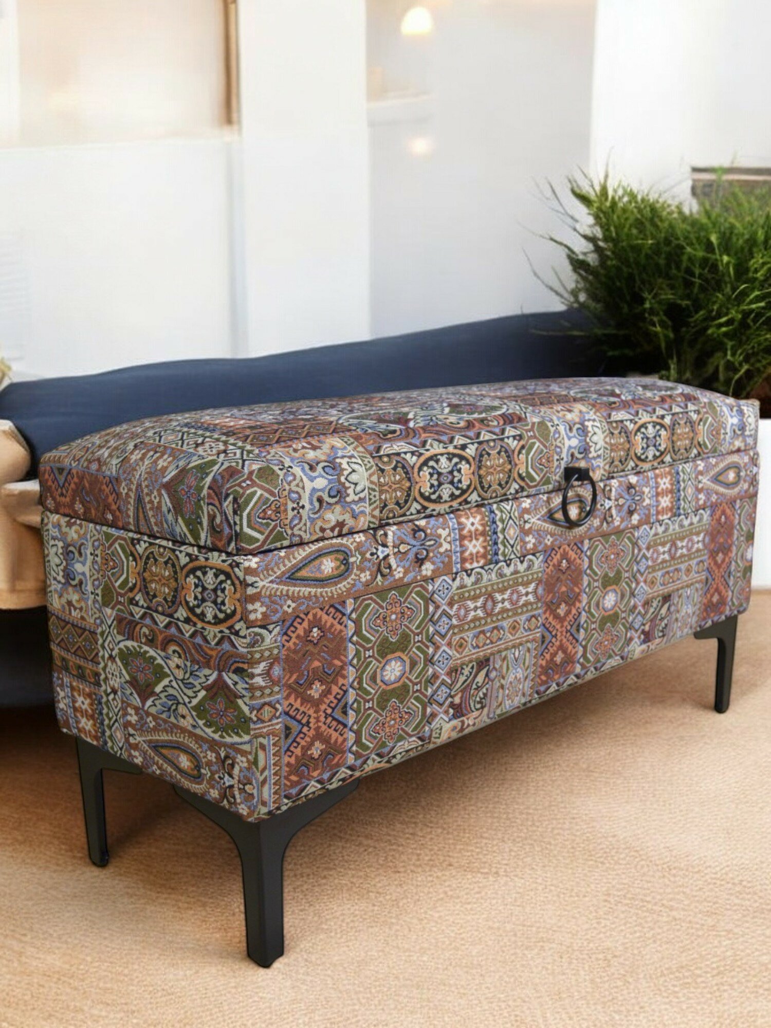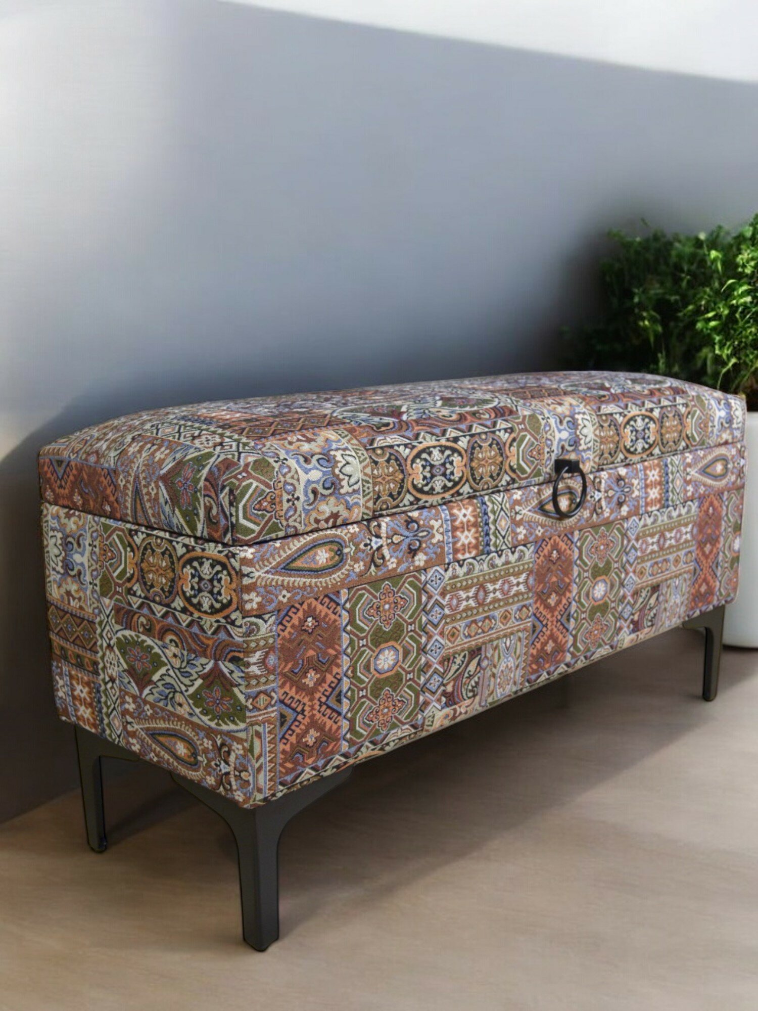Банкетка из гобелена на металлических ножках c ящиком для хранения пуфик в спальню и прихожую коричневая интересное: