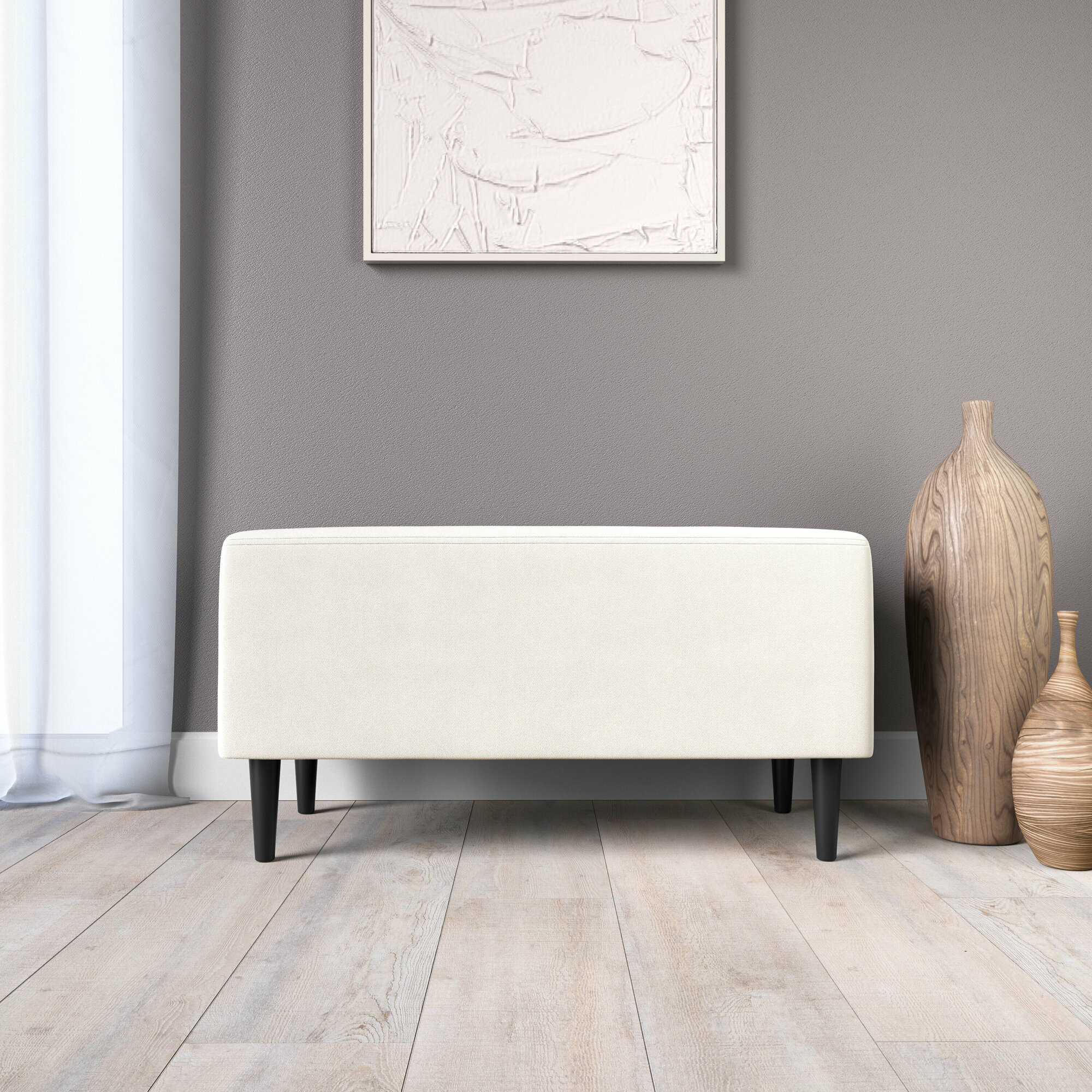 Обувница для прихожей с сиденьем закрытая / Пуф мягкий из экокожи / Банкетка в прихожую Бежевый 59.5*38.5*38