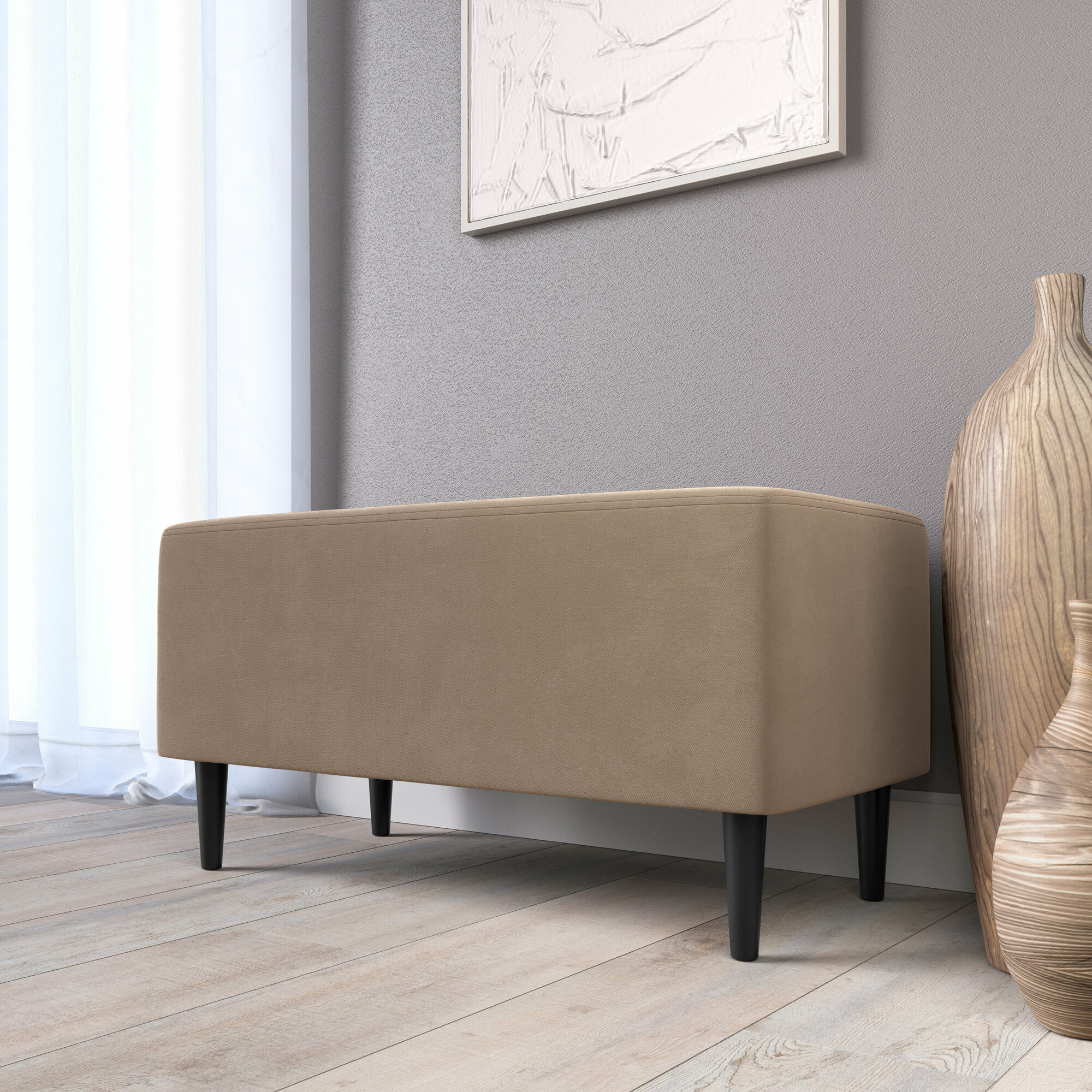 Обувница для прихожей с сиденьем закрытая / Пуф мягкий из экокожи / Банкетка в прихожую Бежевый 59.5*38.5*38