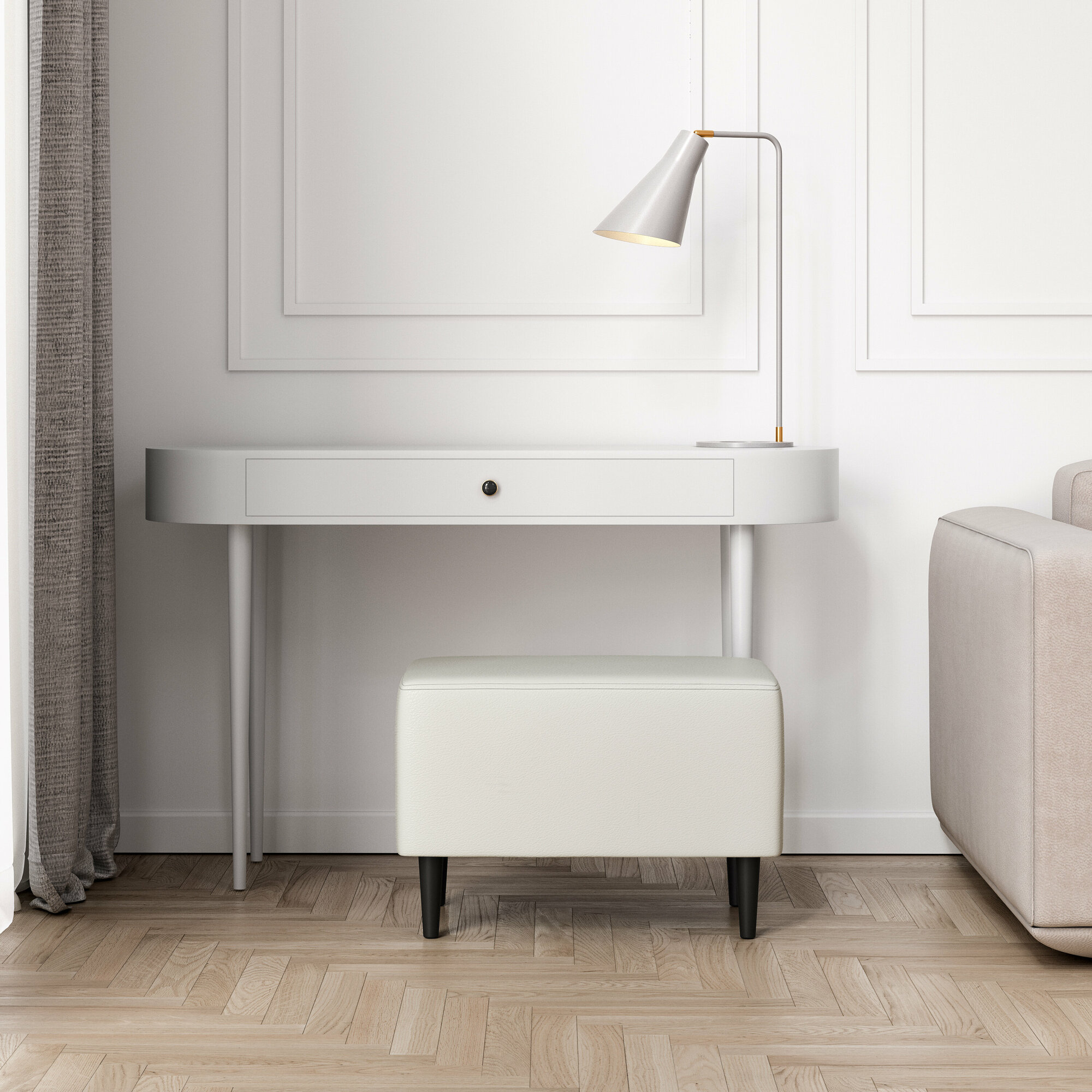 Пуф SALON TRON "Будапешт", 40х80 см, максимальная нагрузка 350 кг, велюр белый