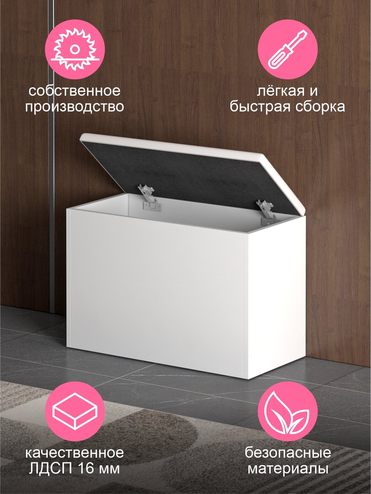 Пуфик в прихожую с ящиком для хранения Арт 1, белый