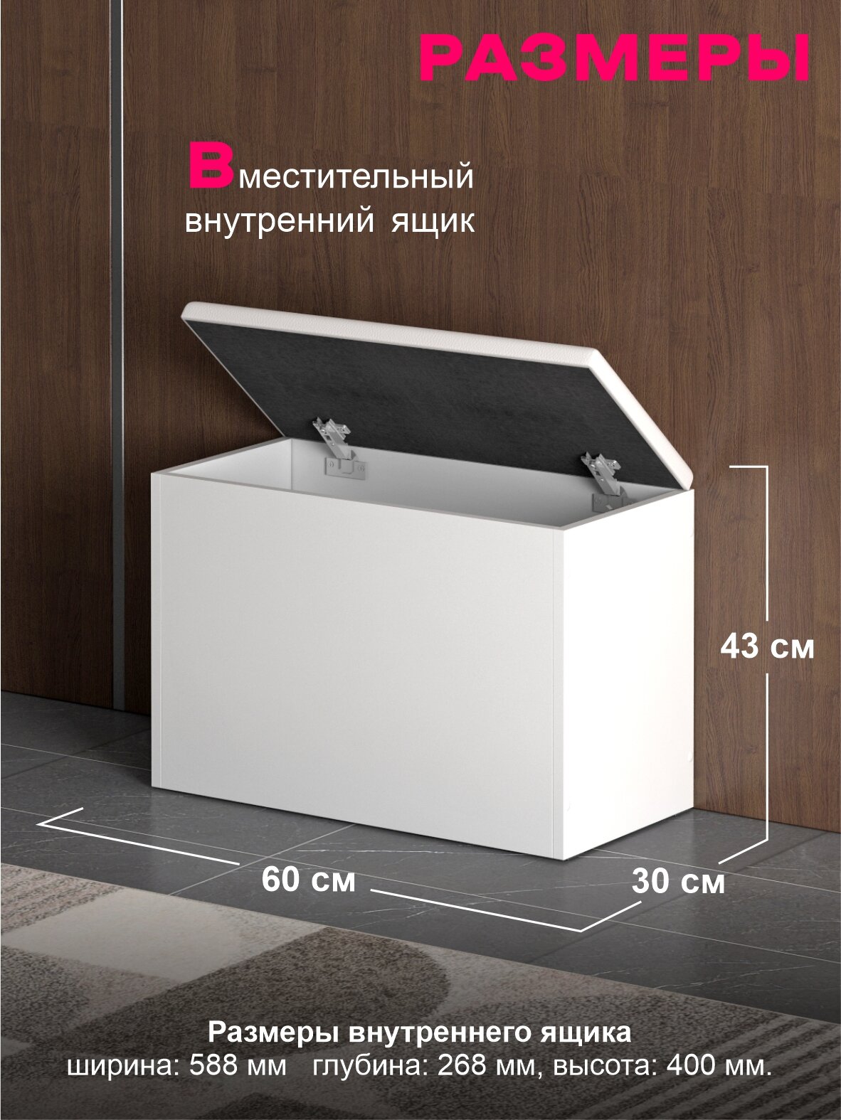 СохранитьПуфик в прихожую с ящиком для хранения Арт 2, Белый Шагрень/Экокожа Белая интересное: