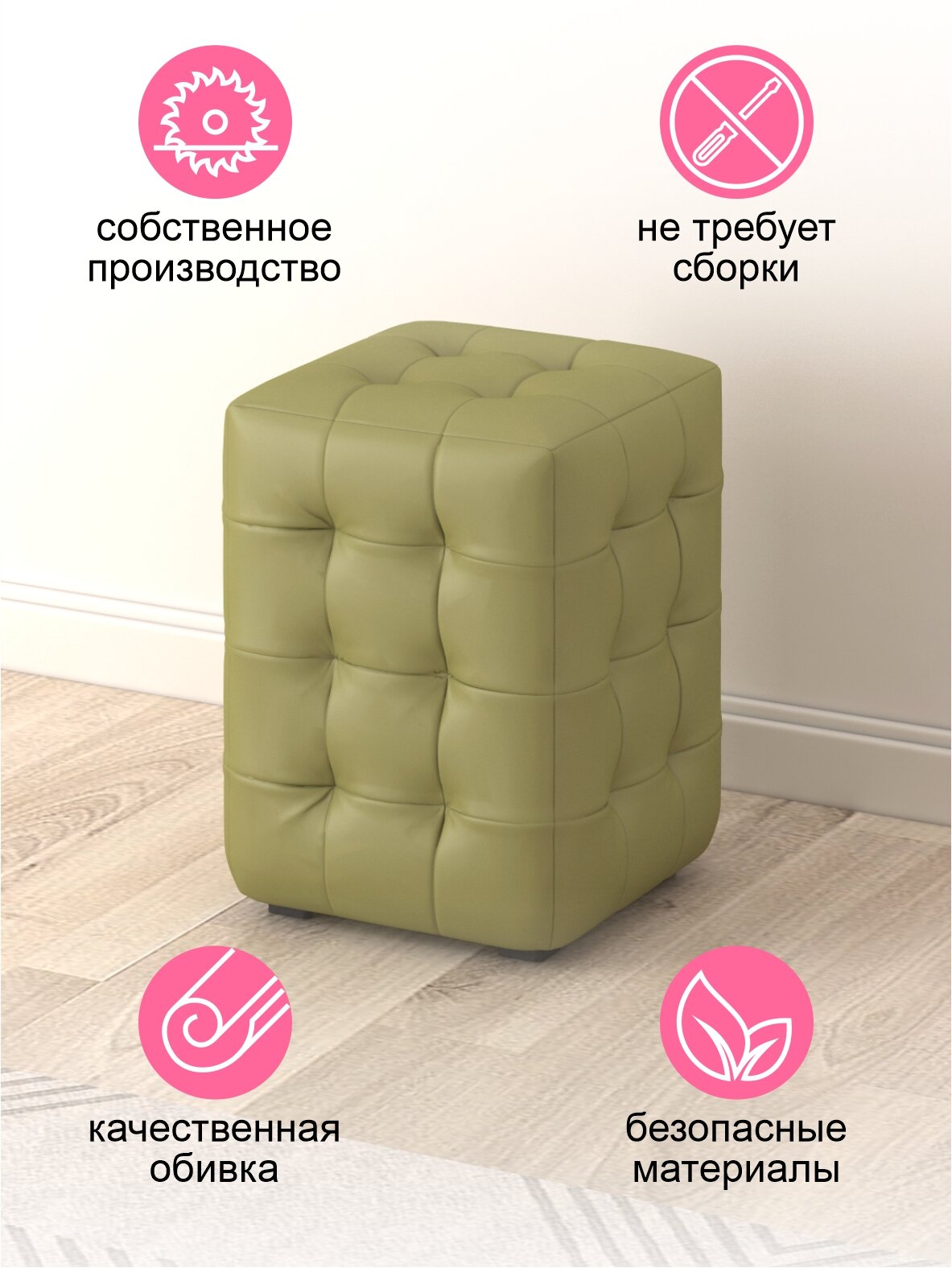 СохранитьПуфик, Пуфик в прихожую, Экокожа фисташка, 32х32х41 интересное:
