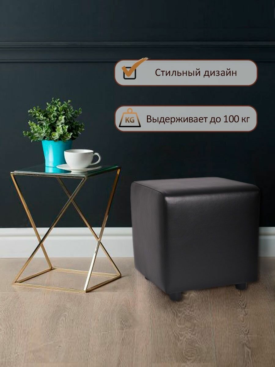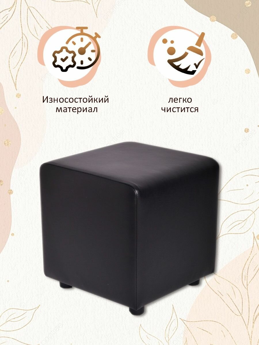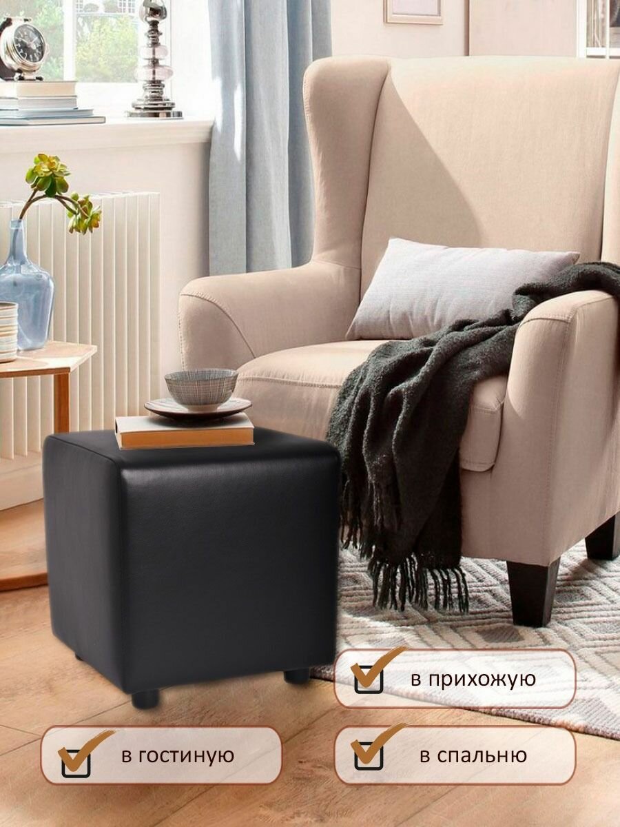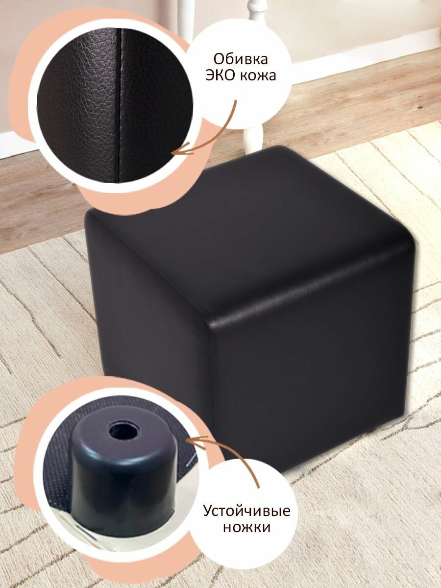 Пуф куб квадратный в прихожую из экокожи / Пуфик для туалетного столика Черный 37*37*38 см интересное: