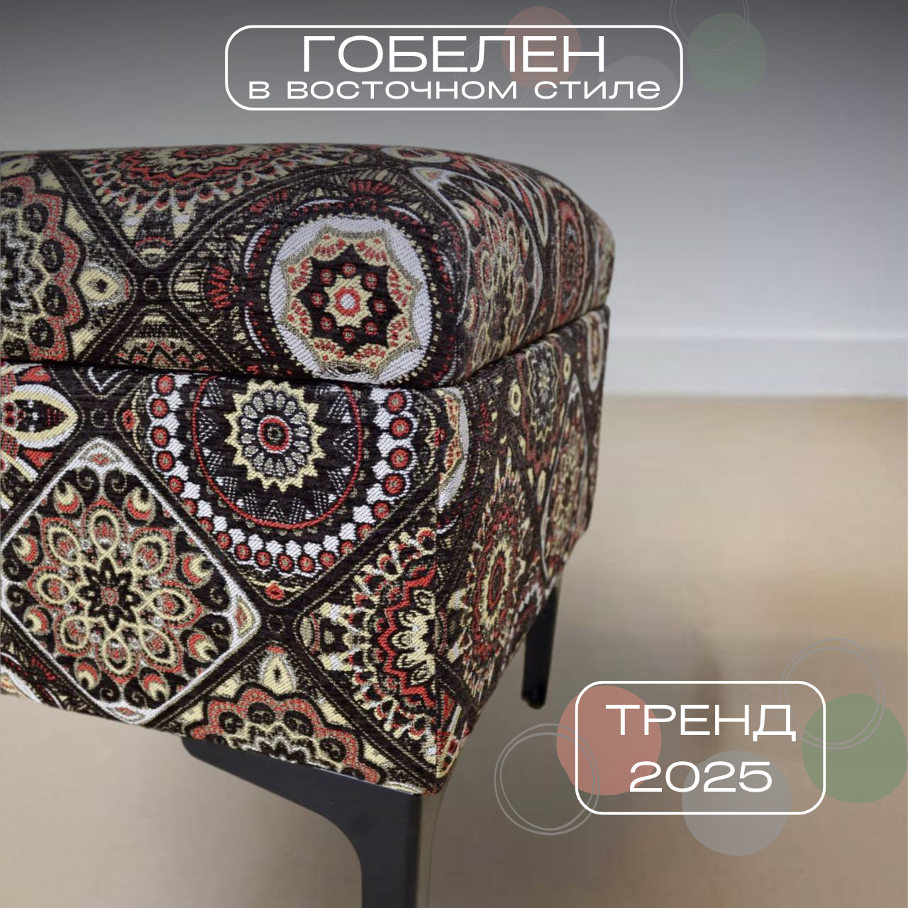 Банкетка пуф с ящиком для хранения в прихожую и спальню из гобелена на металлических ножках интересное: