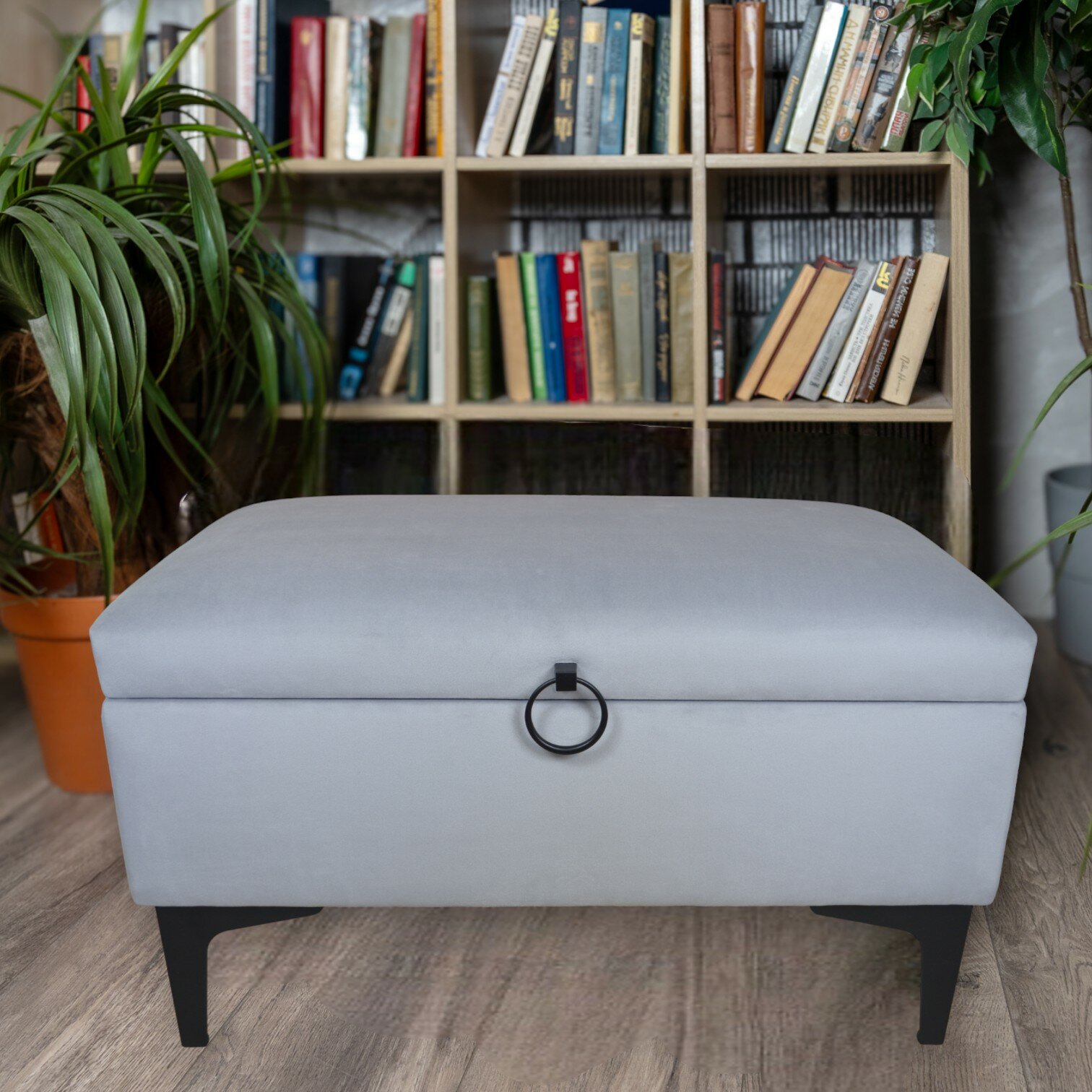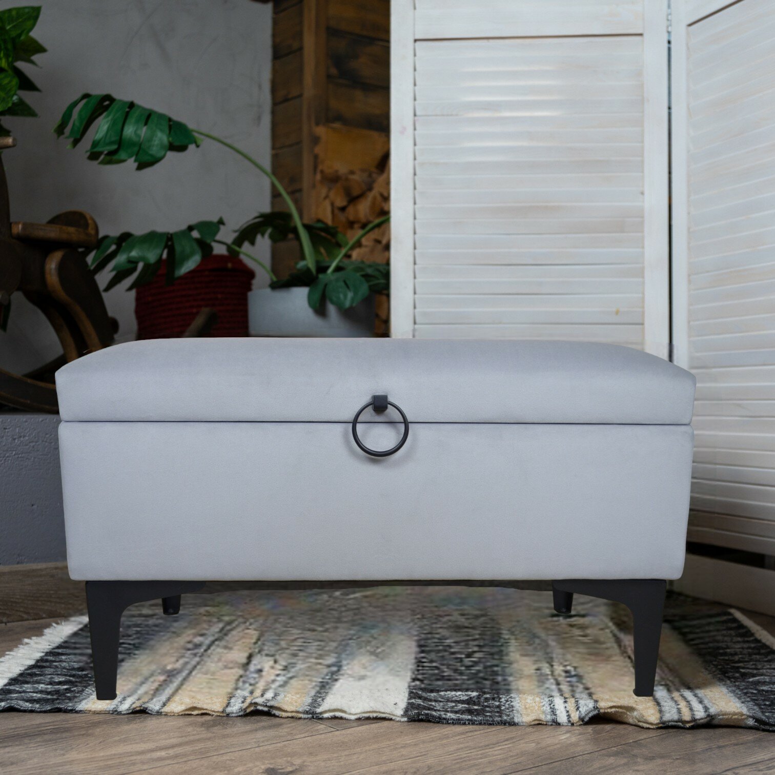 Купить Банкетка серая однотонная из велюра на металлических ножках c ящиком для хранения пуфик в спальню и прихожую